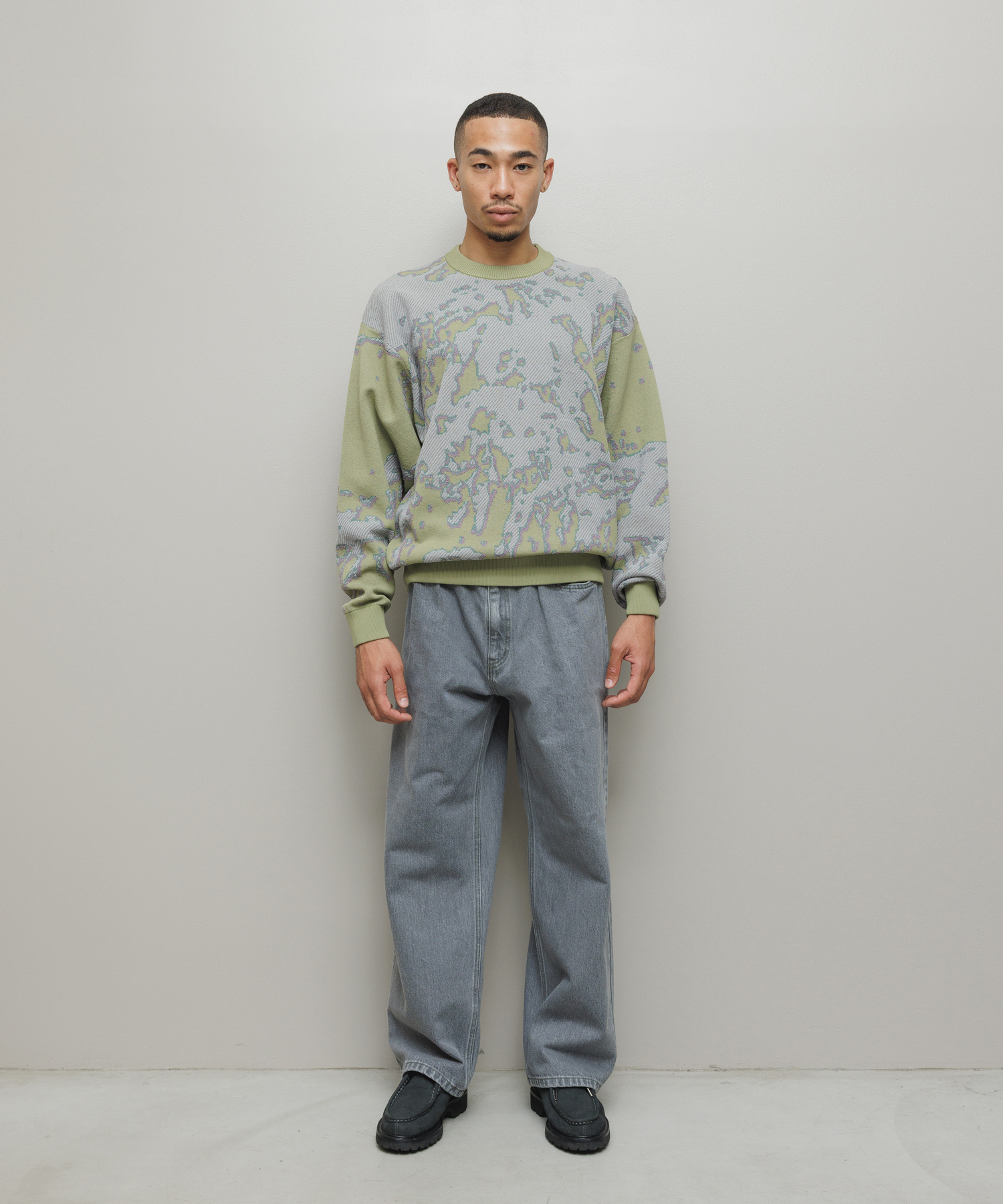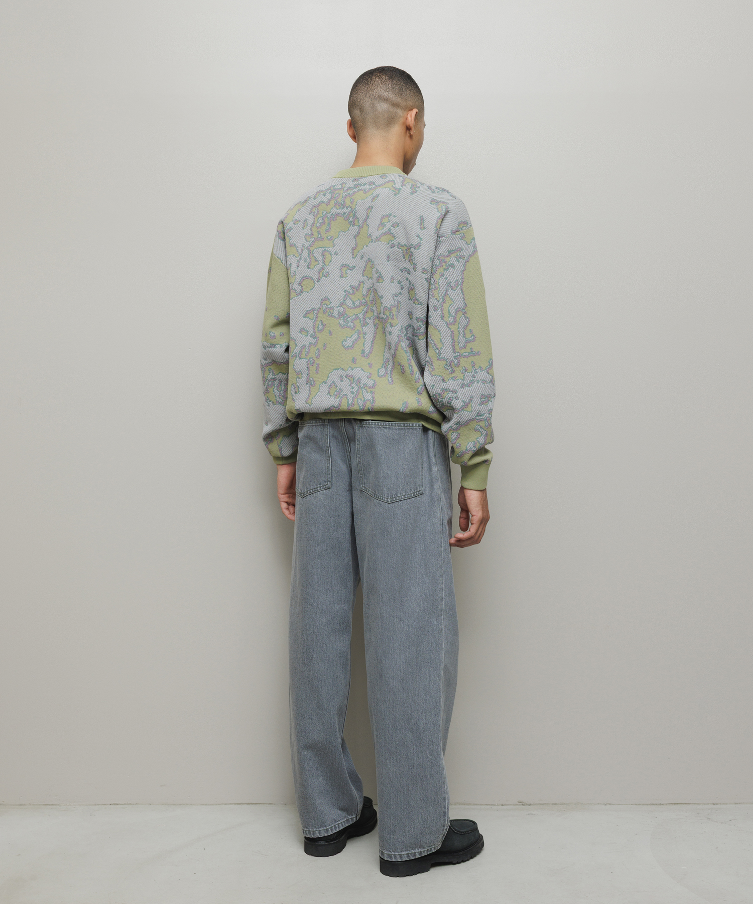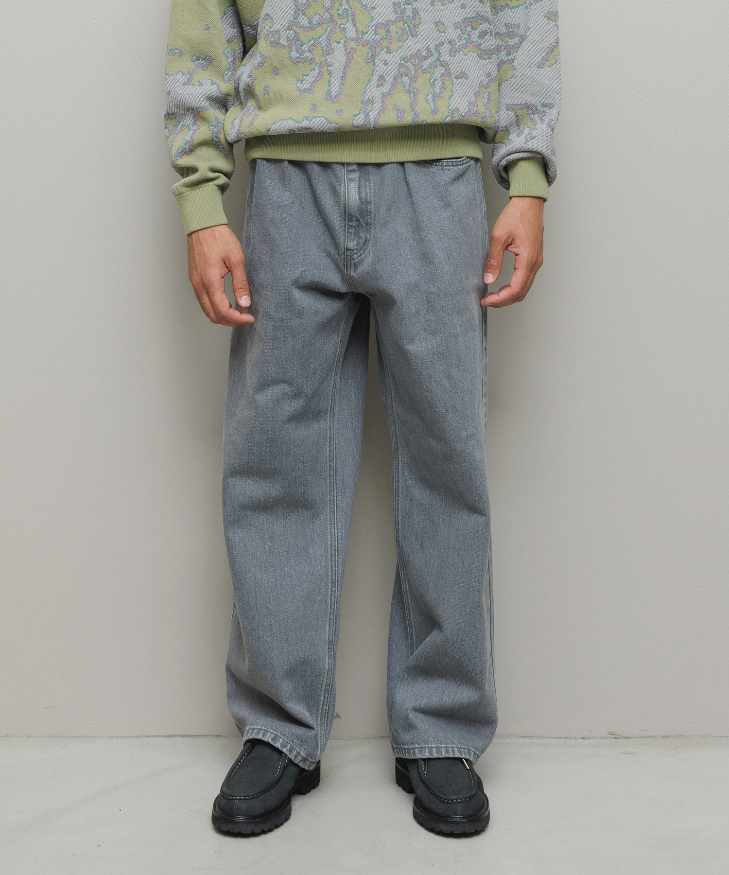 ストレートレッグのワイドシルエットの5ポケットジーンズ。タック入り、ダブルヨークデザイン。色落ち感のクリーンな12ozの岡山県産デニム。リジッド、ブラック、インディゴのミディアムウオッシュ広島県福山にて作成。MADE IN JAPAN。