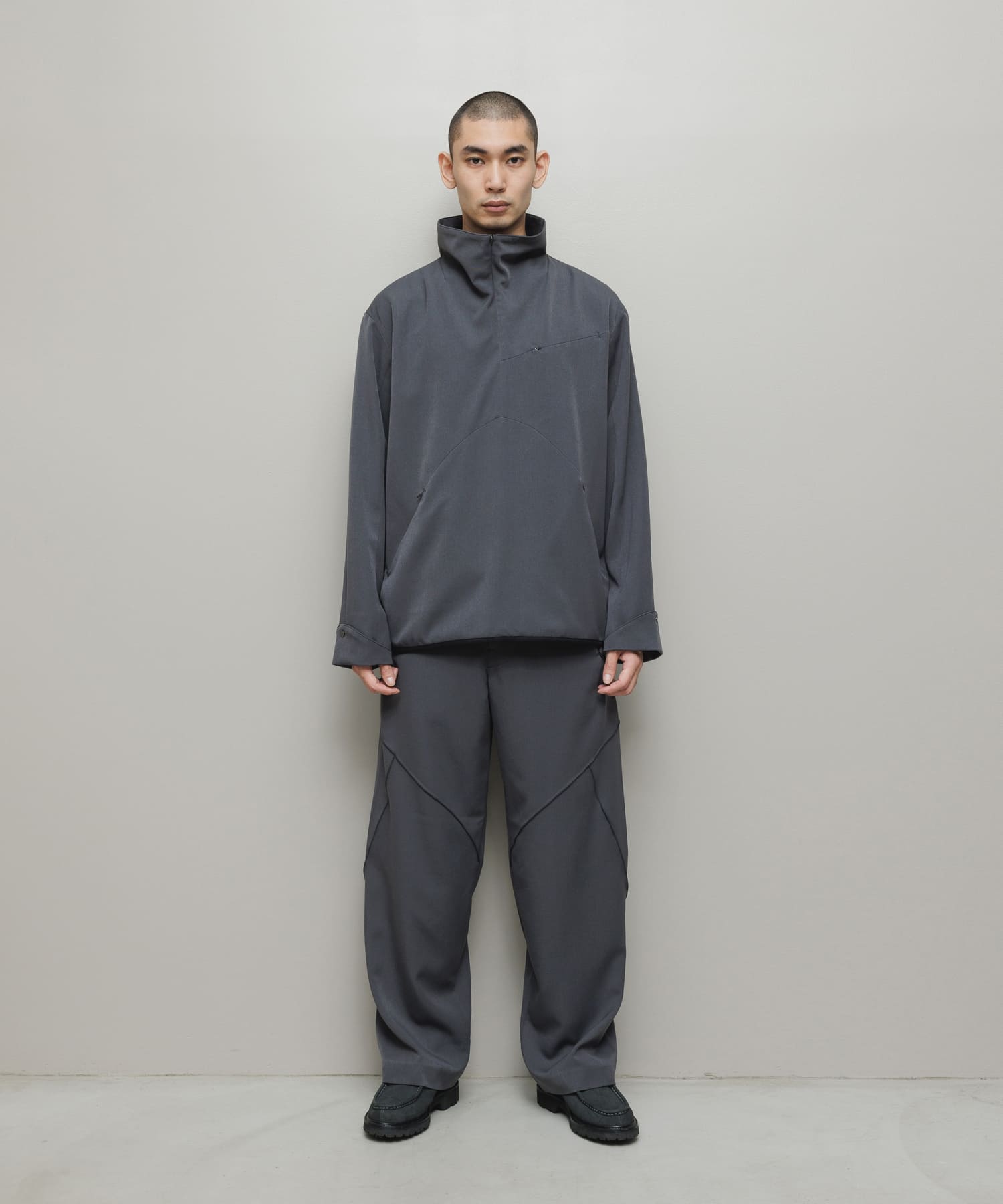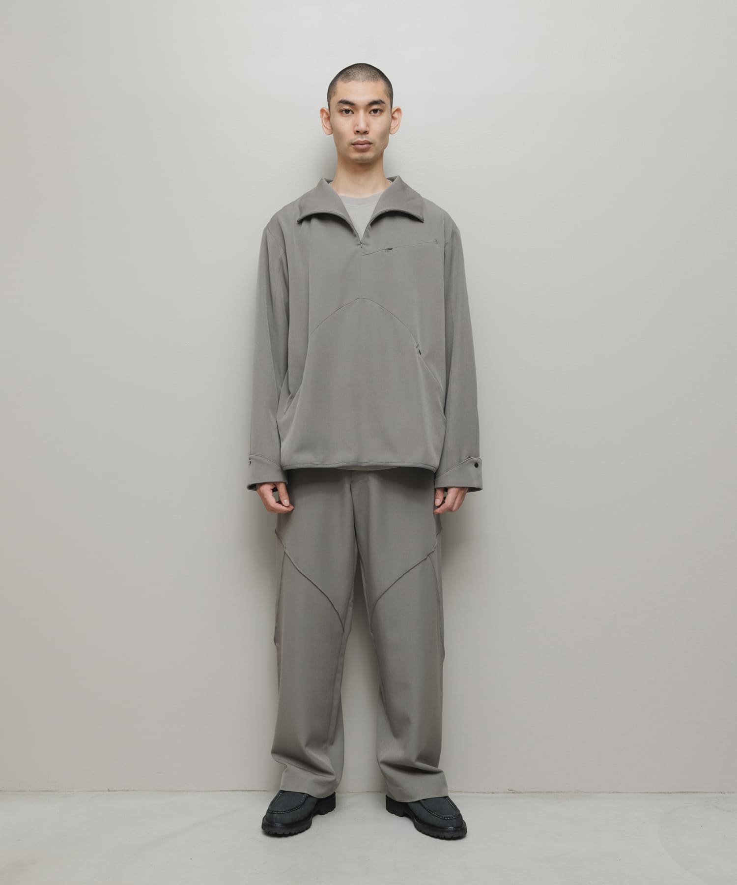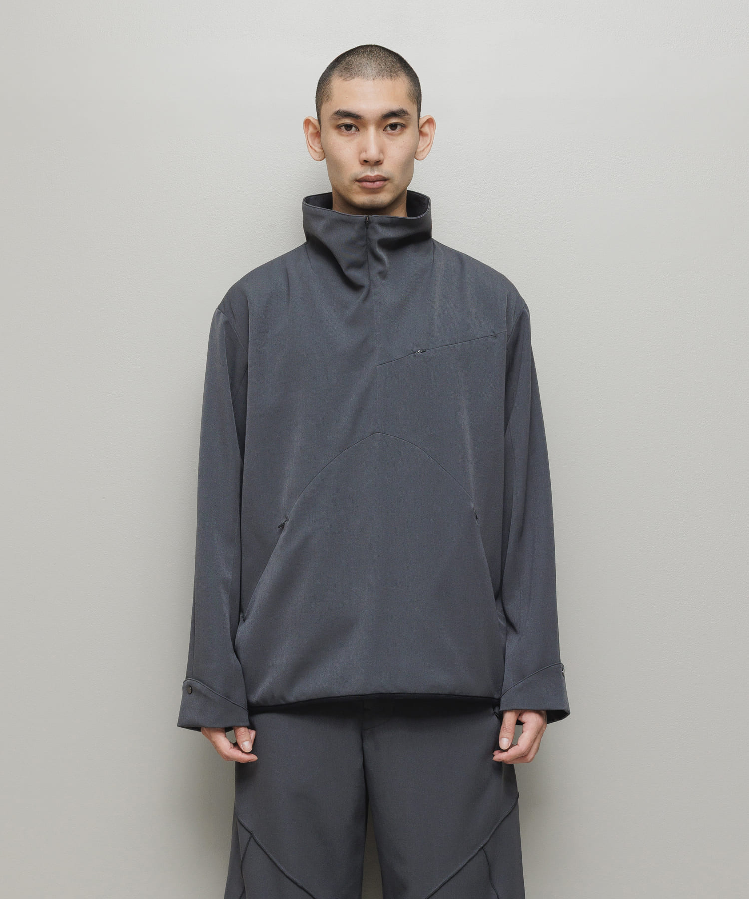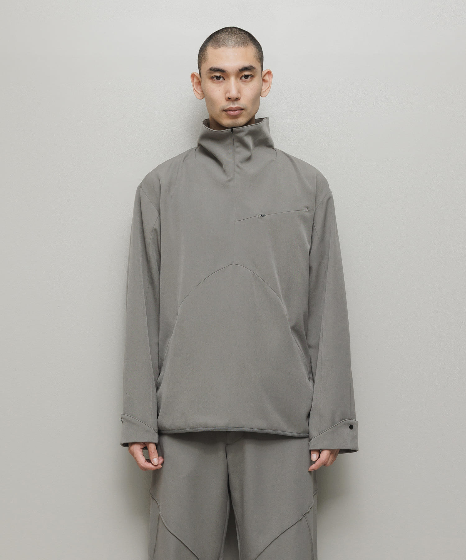 2WAYストレッチテックウール。ハーフジッププルオーバー。立体パターン。