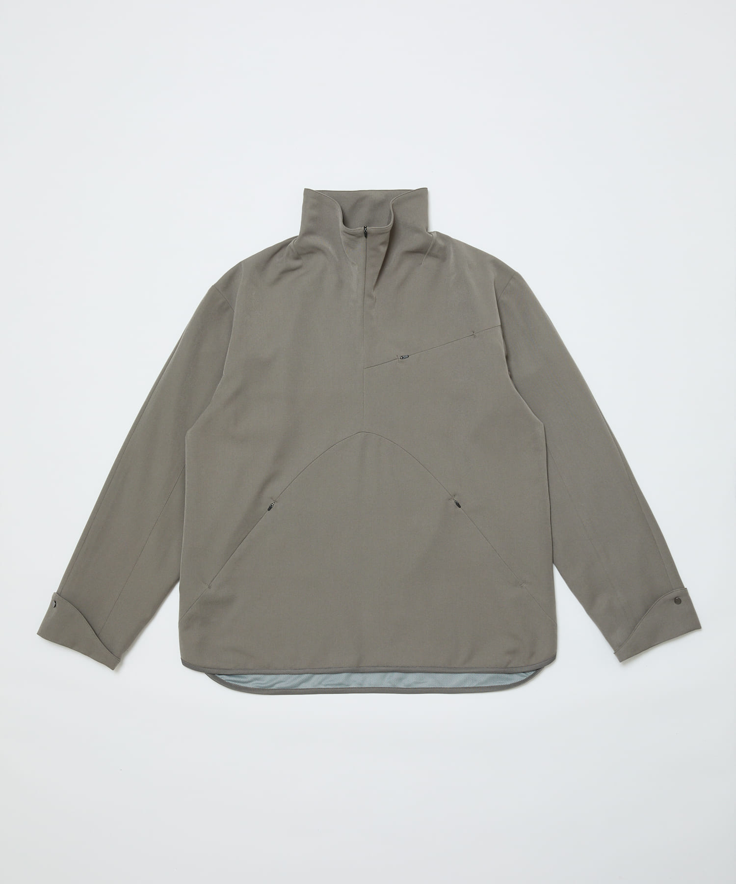 サイドはスナップボタンで開閉。袖口の押し返しにスナップ。