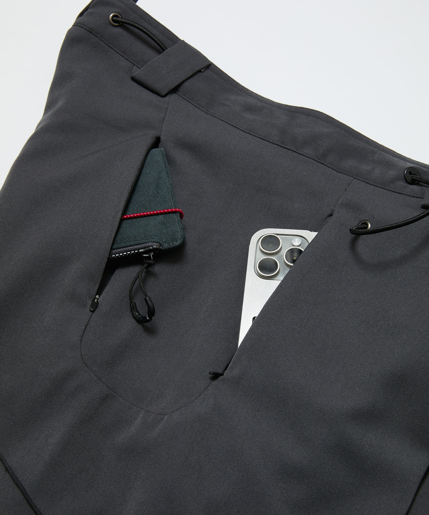 コンシールファスナーのハンドポケットとヒップポケット。