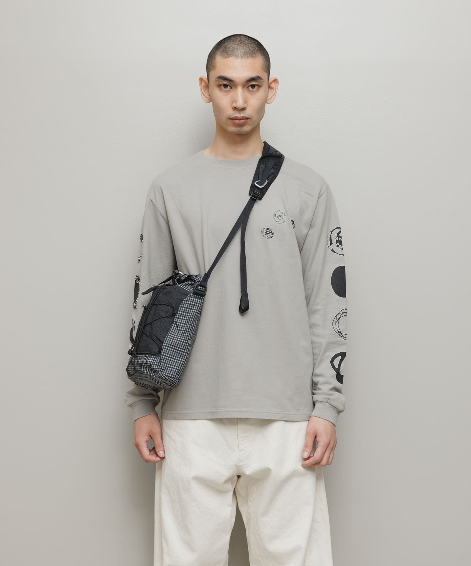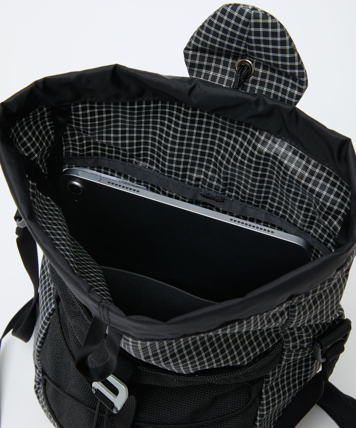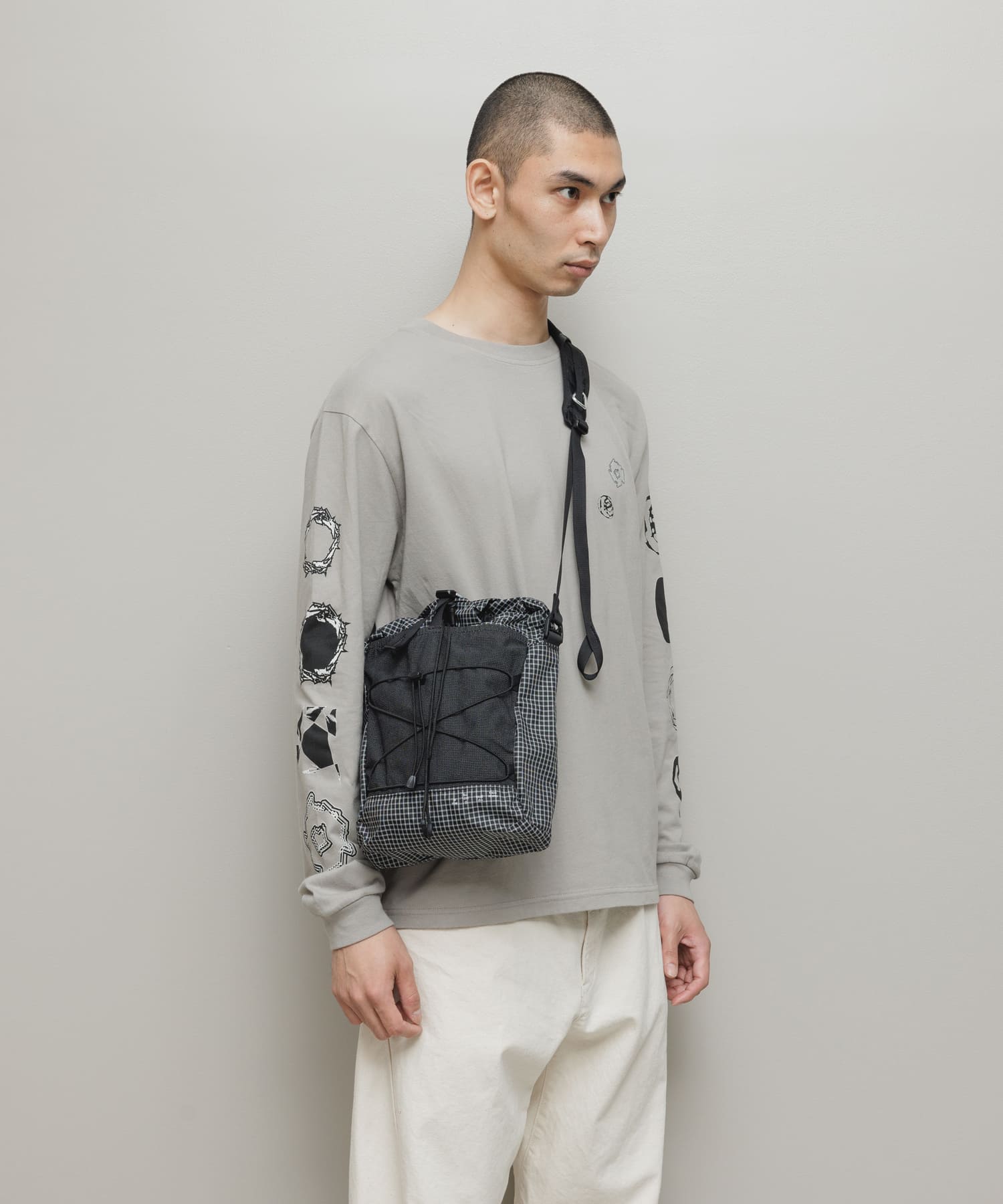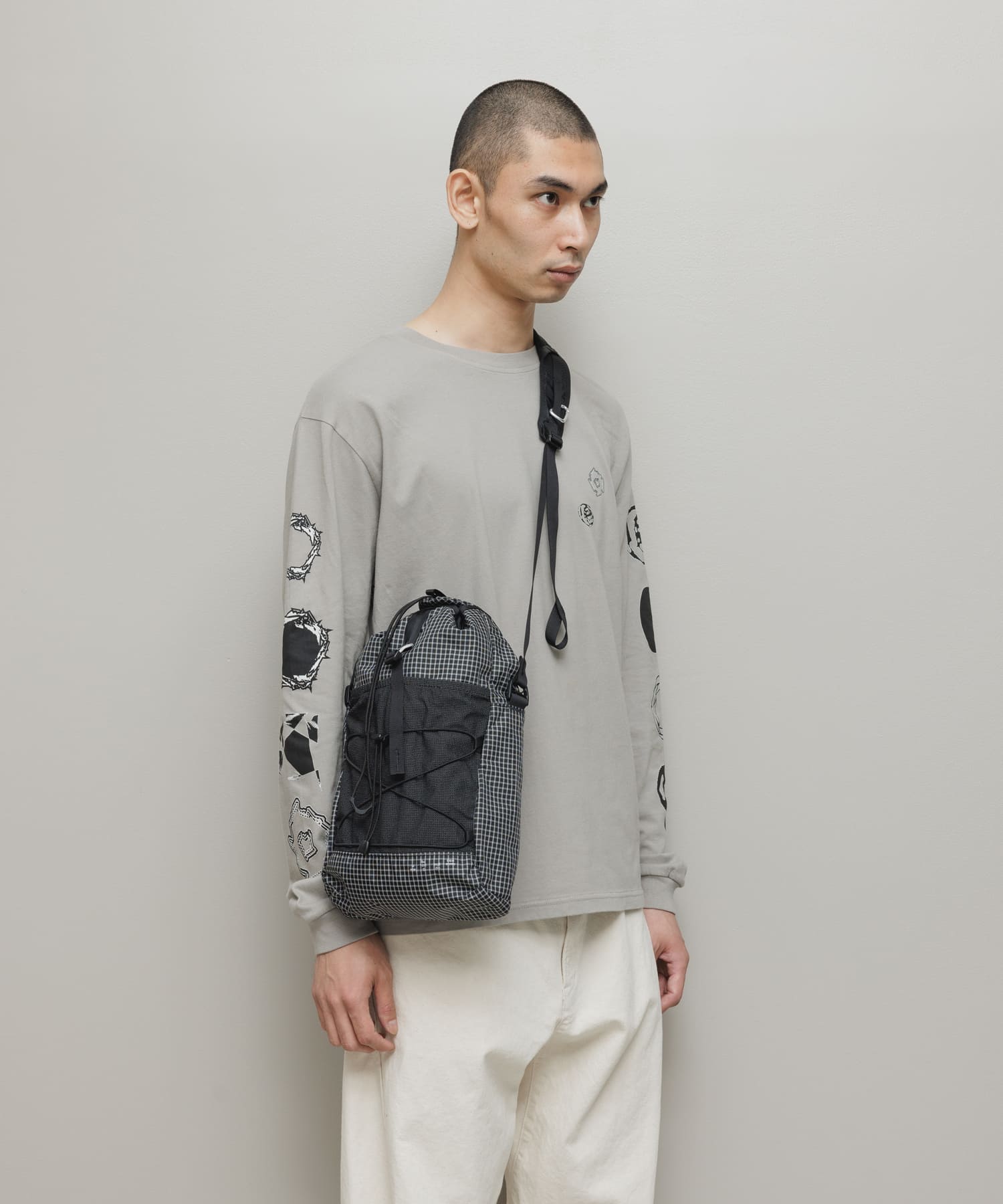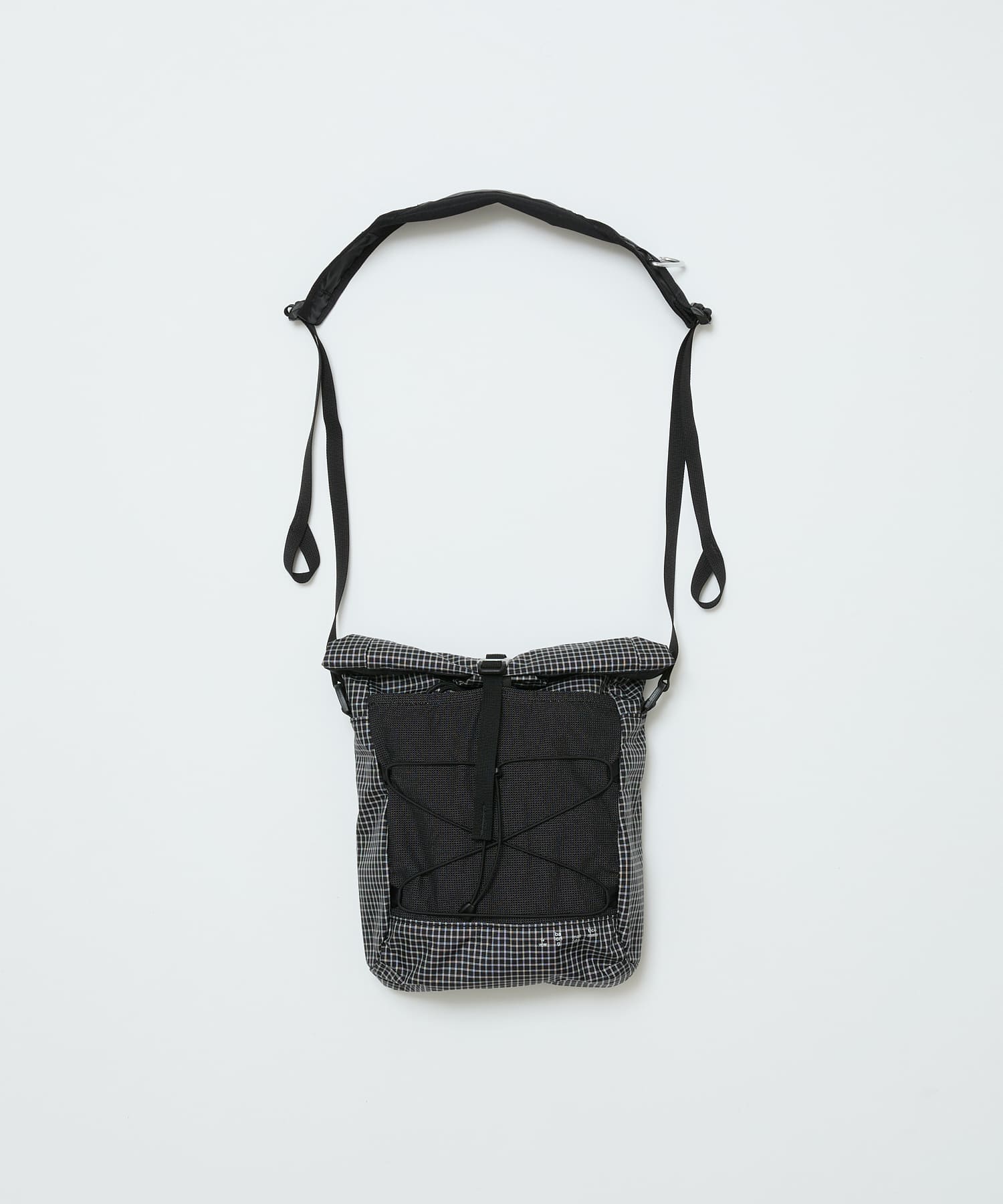 シティとハイクを行き来する軽量ショルダーバック。米CHALLENGE SAIL CLOTHの撥水、防水、引裂強度の高い ULTRA GRIDをメインに、同社のULTRA STRETCHのポケット。内側にはiPadなど収納可能なスリーブ。バッグメイカーSPEAK EASY製 F : W220/H220~350/D85