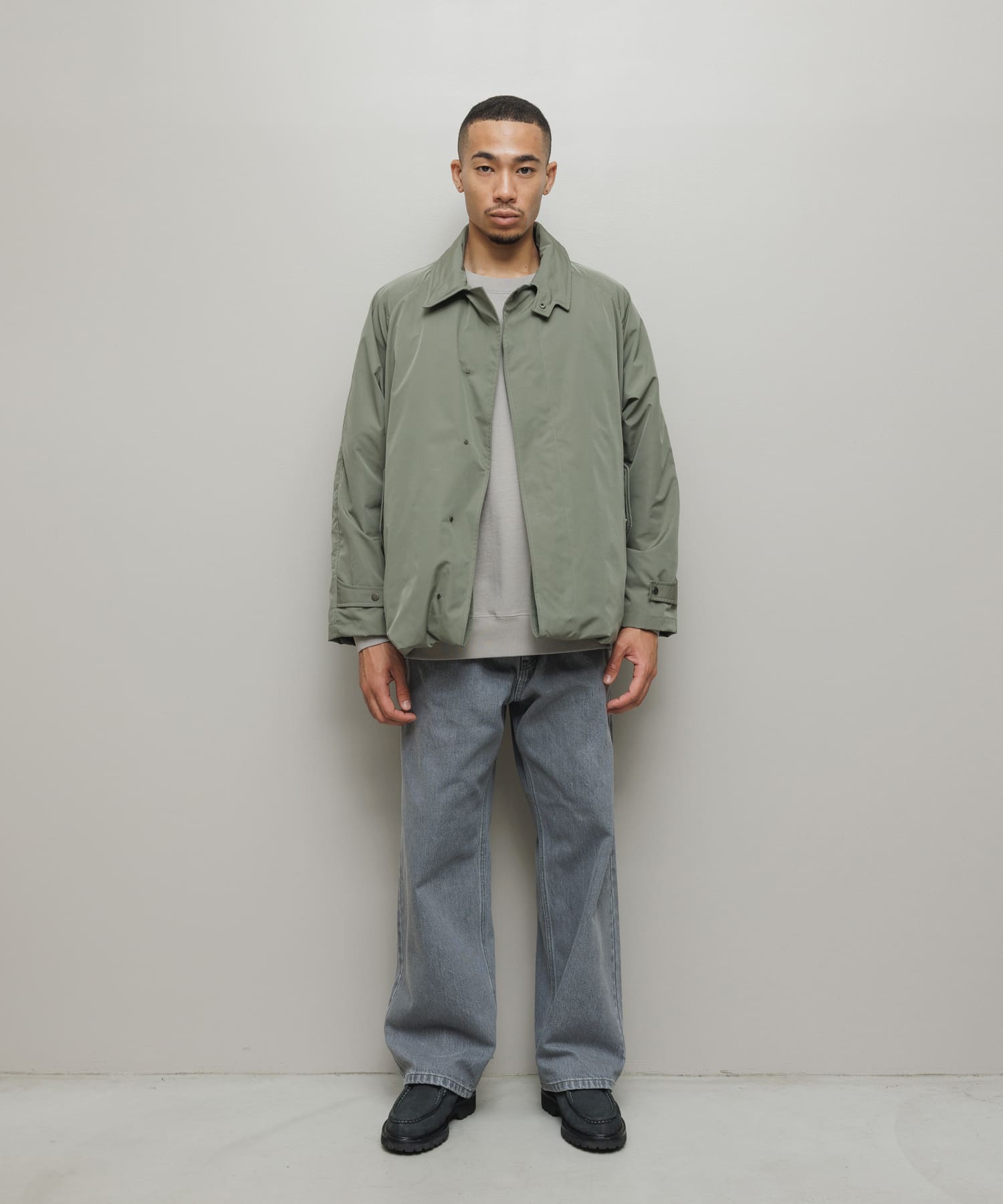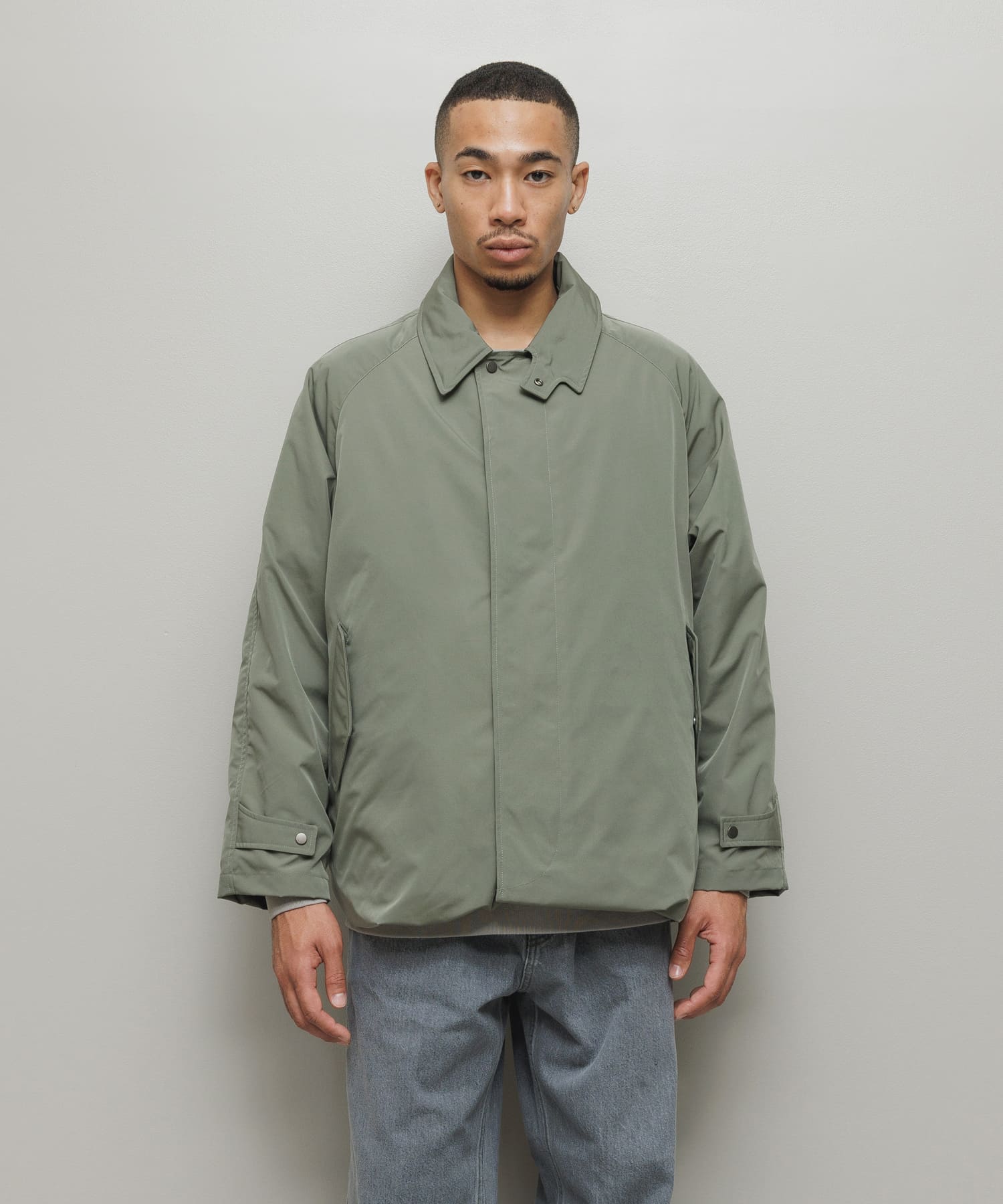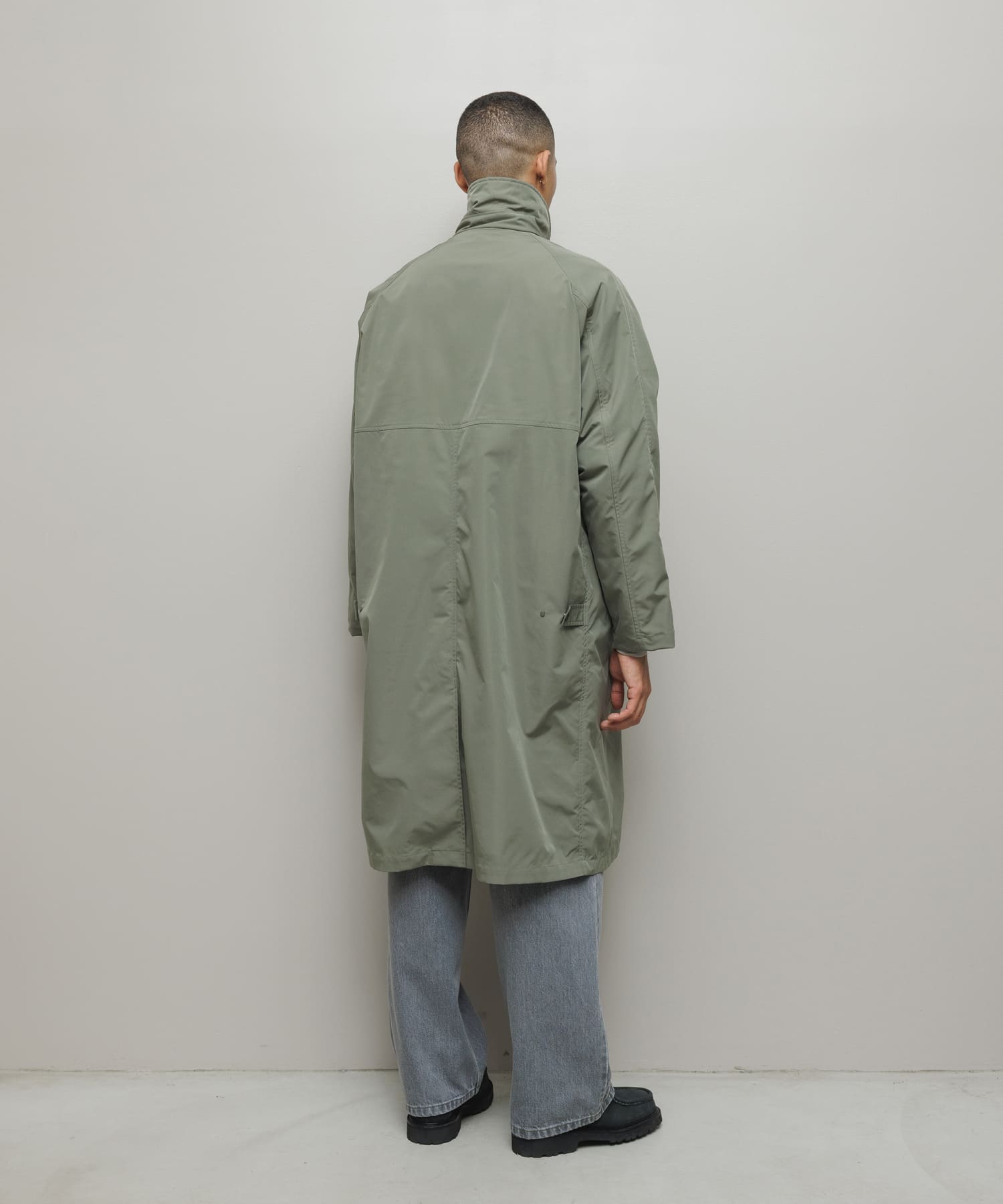 日本発のダウンブランド<TAION>とコラボレーション。ダウンライナー付きのステンカラーコート。しなやかでマットな質感のウォータープルーフポリエステル素材。スタンド襟。ライナーは取り外し可能でベストとして着用可能。TAIONオリジナルナイロン採用。800フィルパワー。