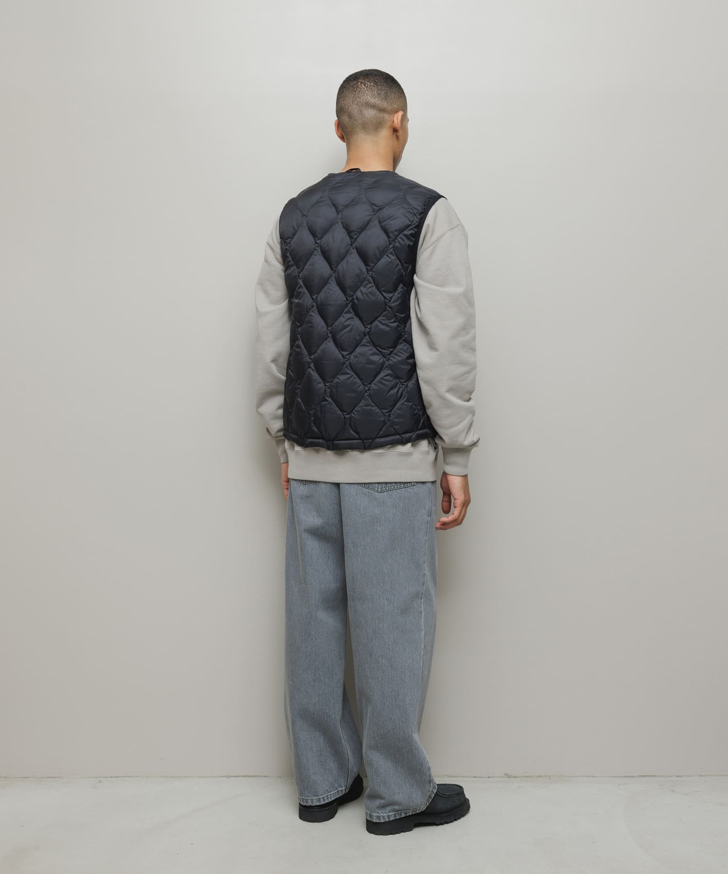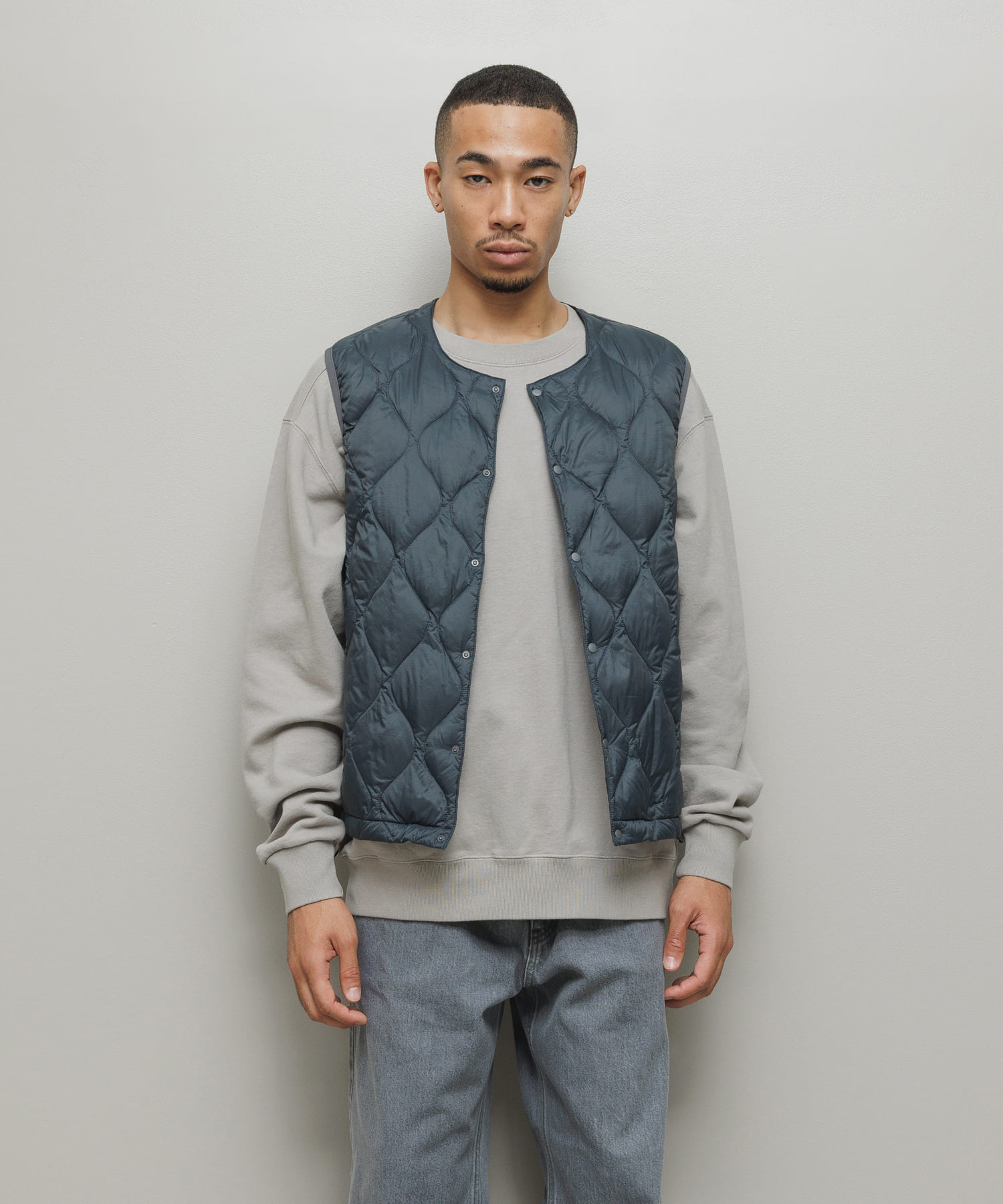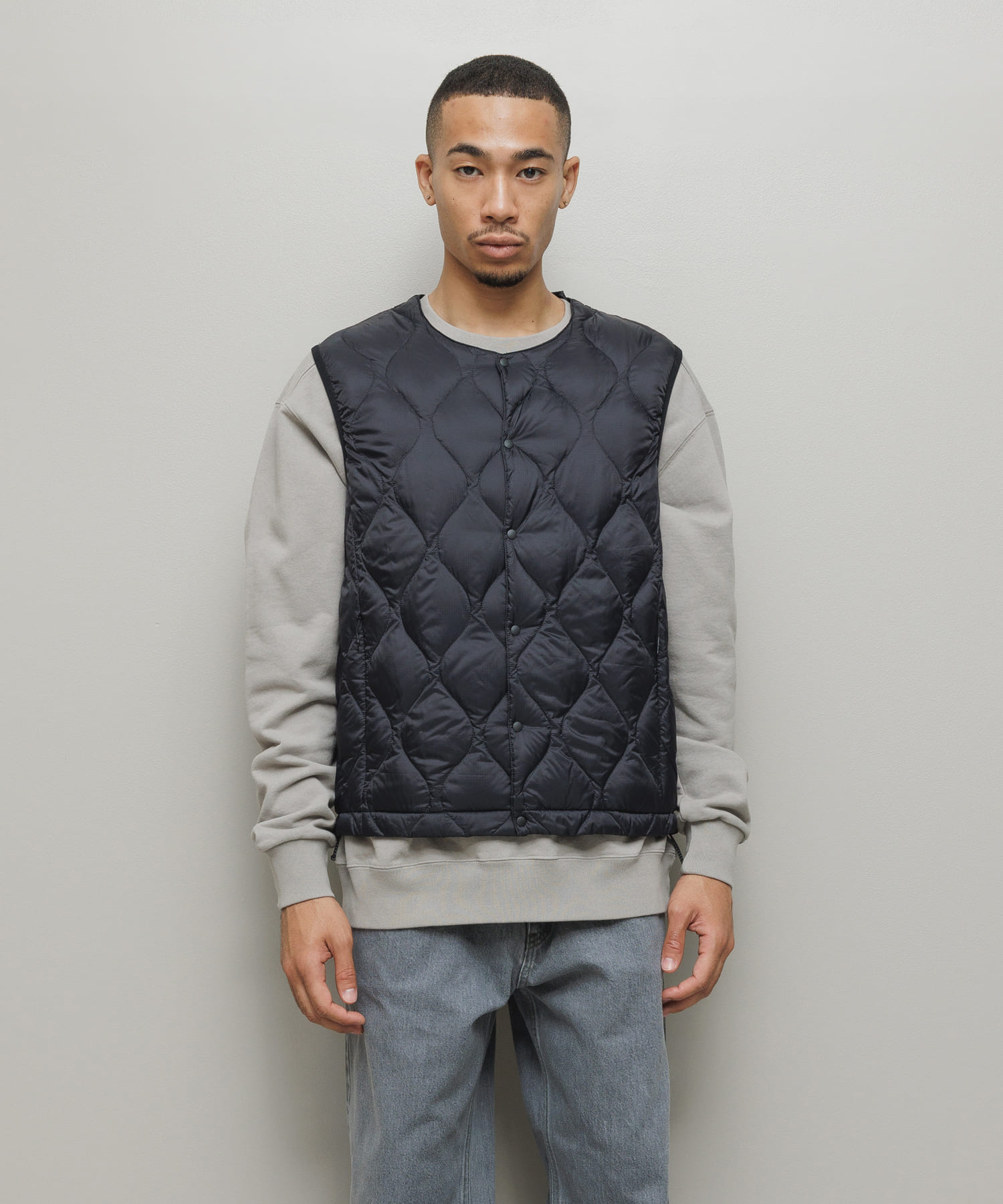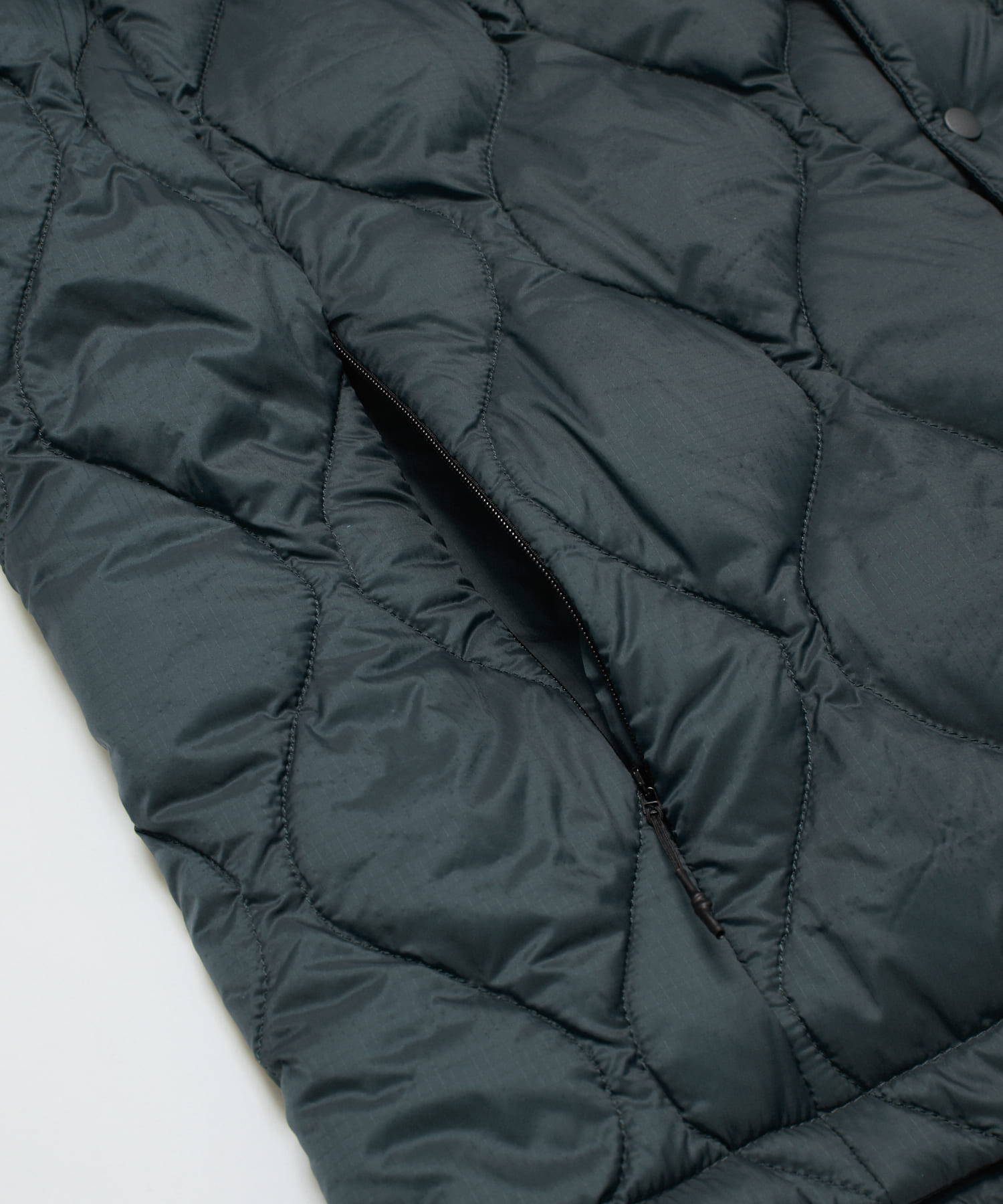 日本発のダウンブランド<TAION>とコラボレーション。ダウンライナー付きのステンカラーコート。しなやかでマットな質感のウォータープルーフポリエステル素材。スタンド襟。ライナーは取り外し可能でベストとして着用可能。TAIONオリジナルナイロン採用。800フィルパワー。