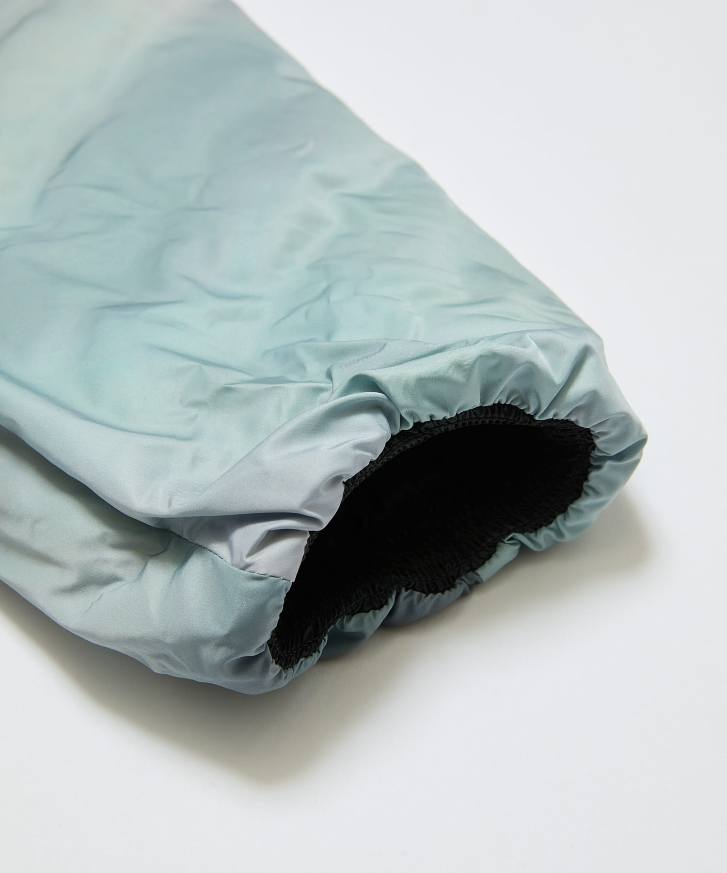 表側にステッチの出ない仕様。スタンドカラー。