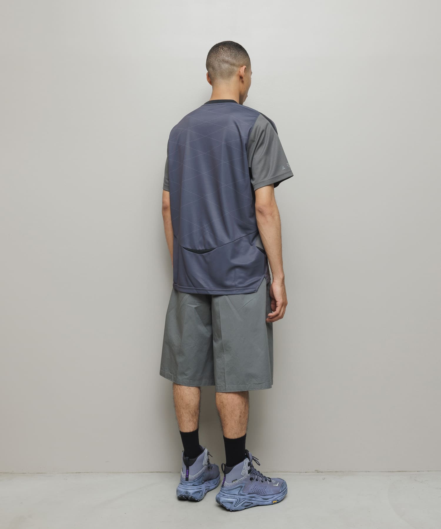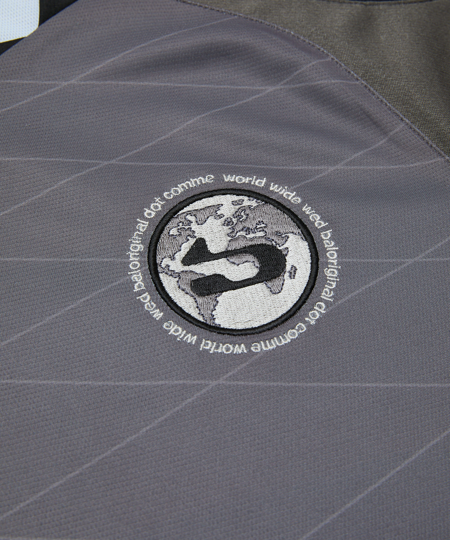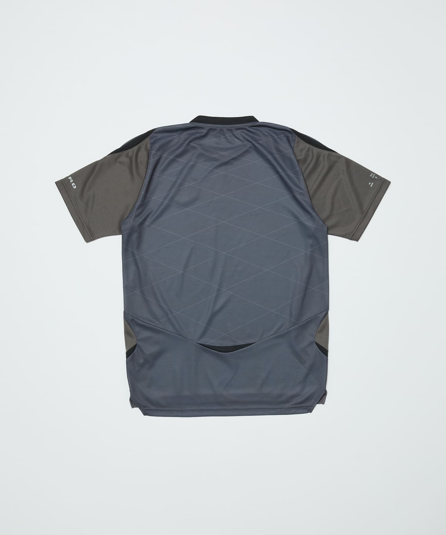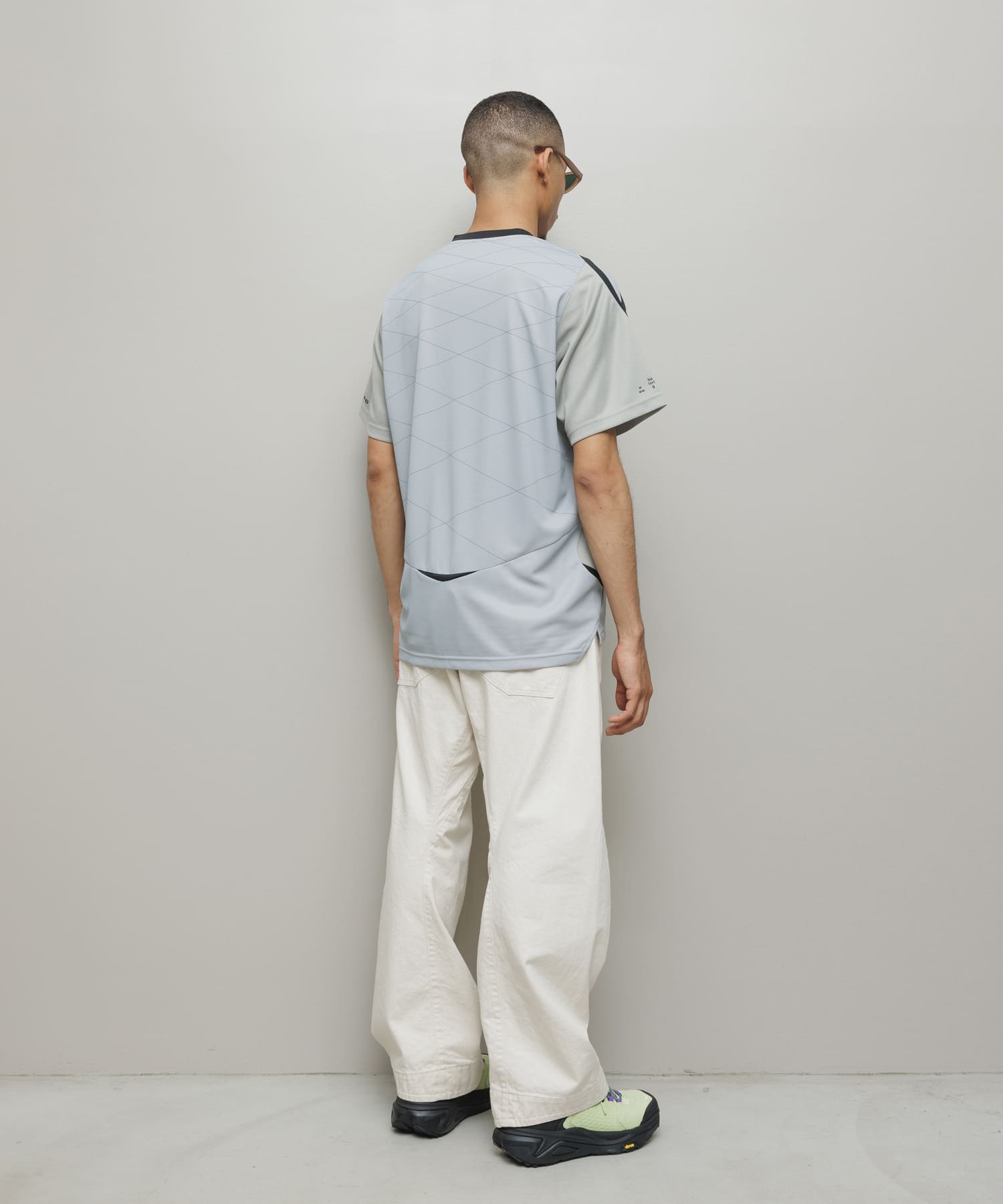 英国初老舗スポーツブランド〈UMBRO〉とのコラボレーションのサッカージャージ。ショートスリーブ。オリジナルグラフィックプリントテキスタイルとナンバリングプリント。吸水速乾機能のポリエステル素材。