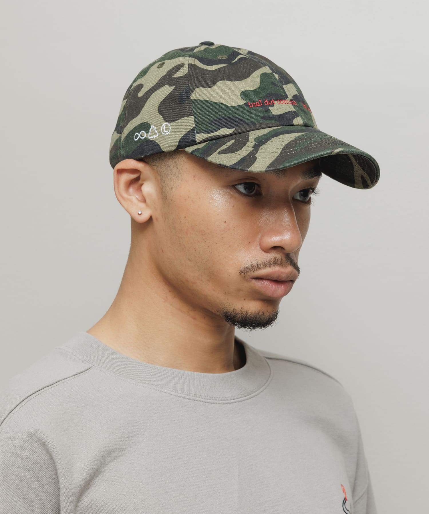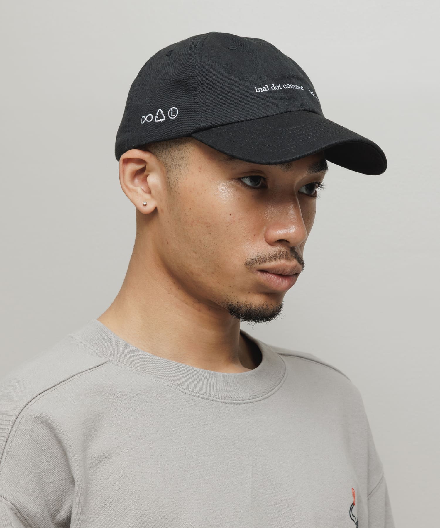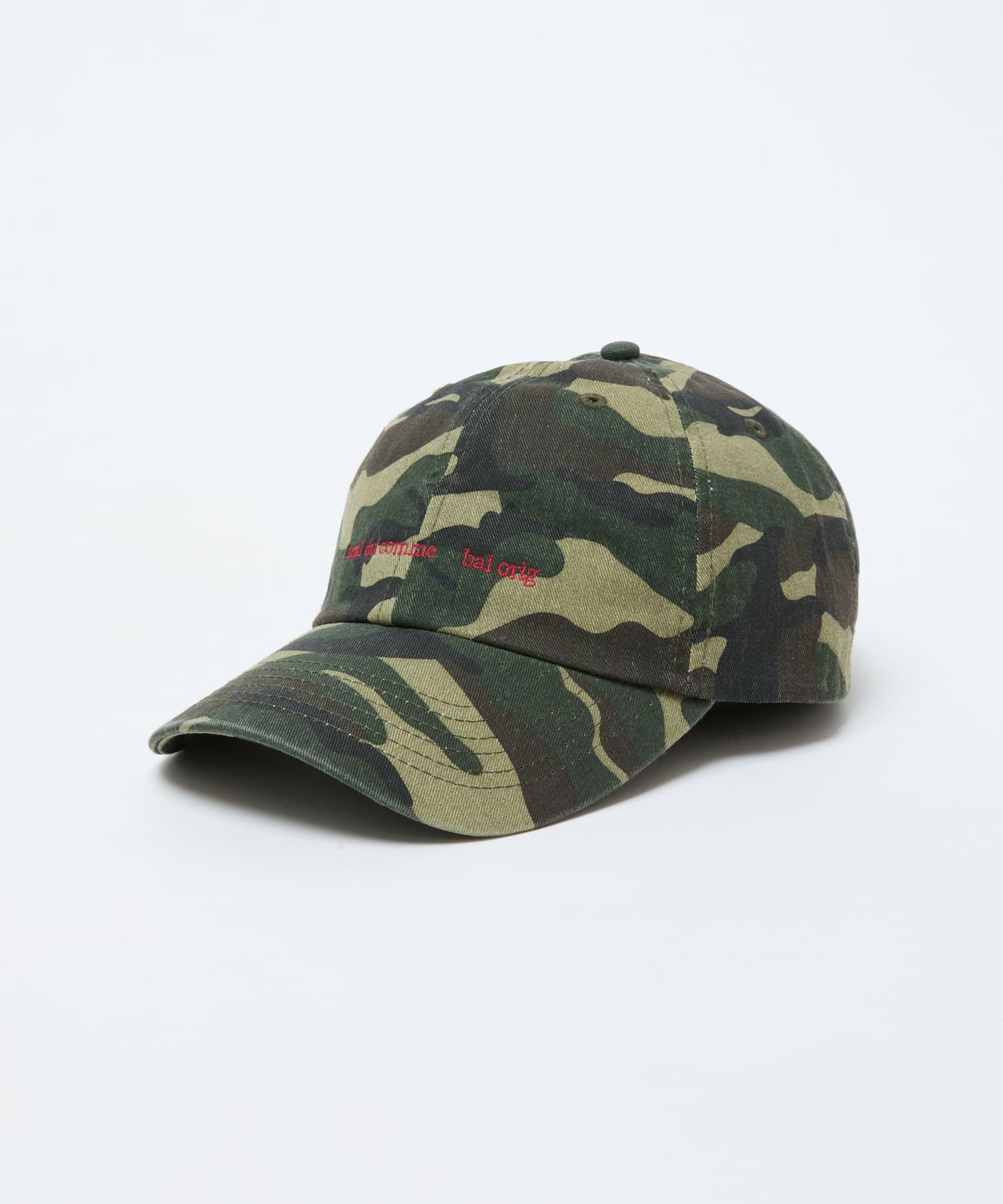 コットンツイル素材の6パネルタイプのベースボールキャップ。芯のないソフトなアンストラクチャーフロントパネル、メタルバックル。ロークラウン、カーブバイザー。フロントに刺繍グラフィック。