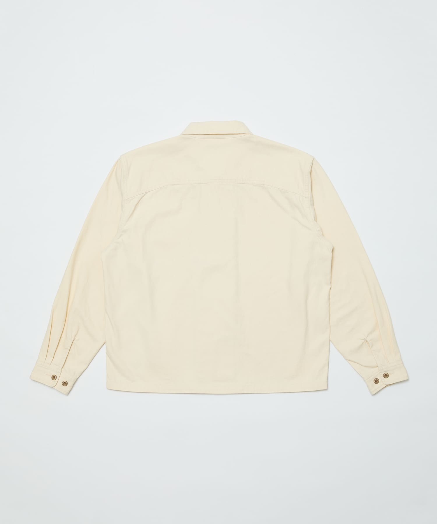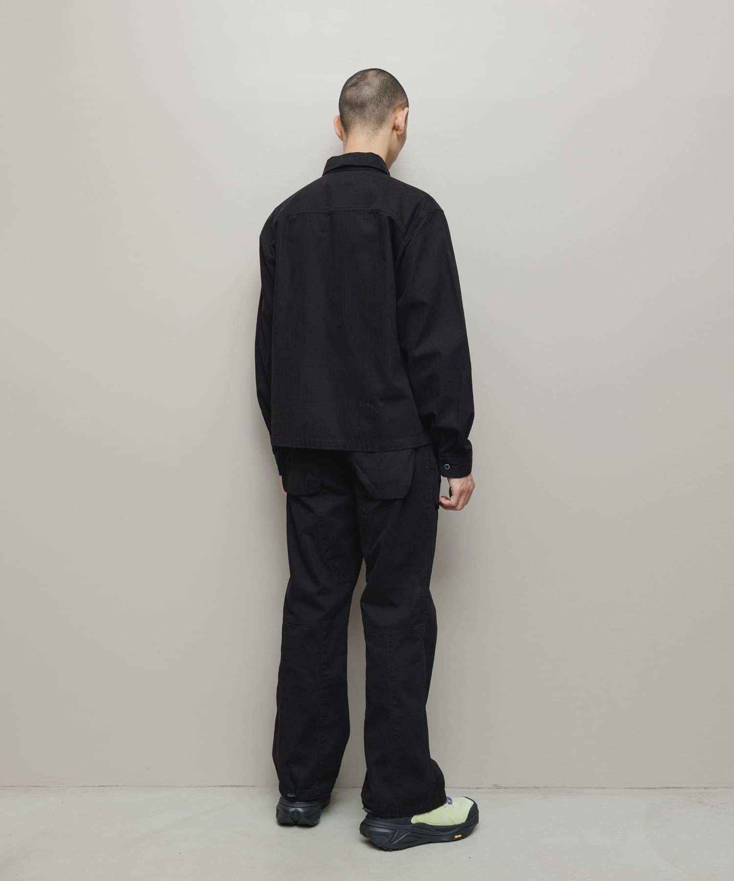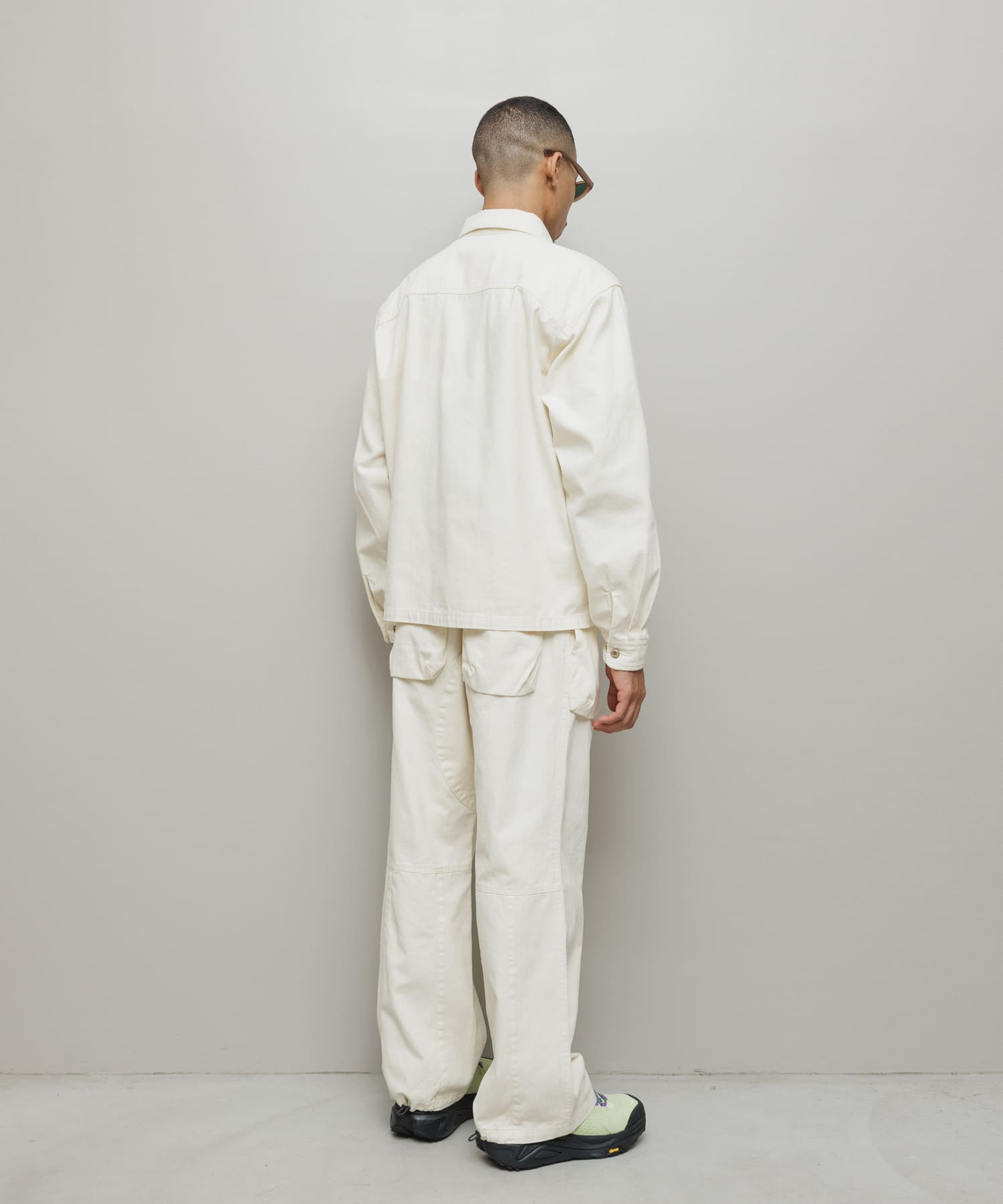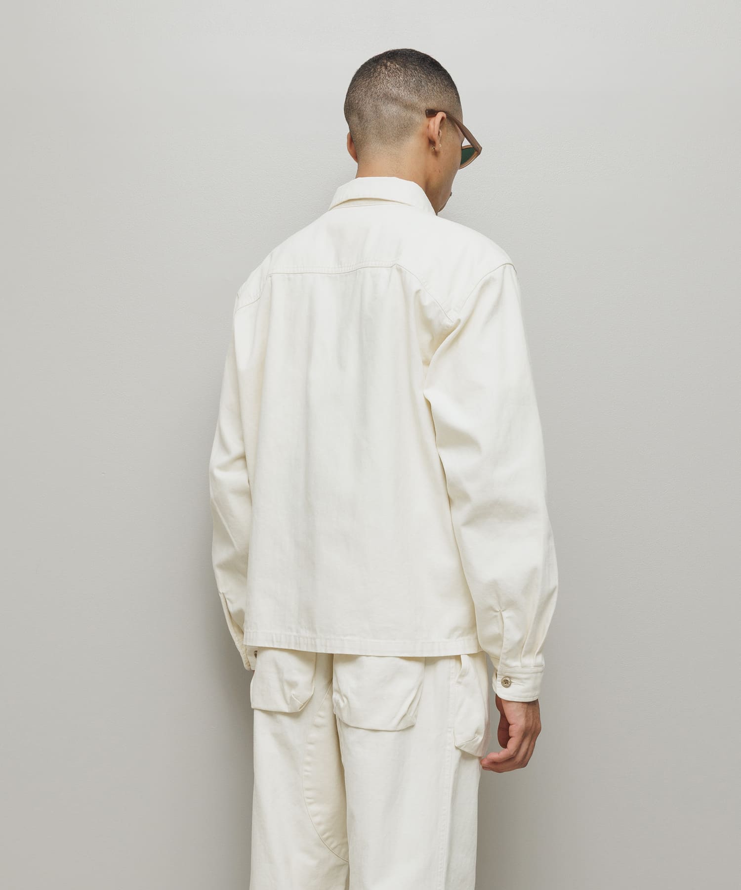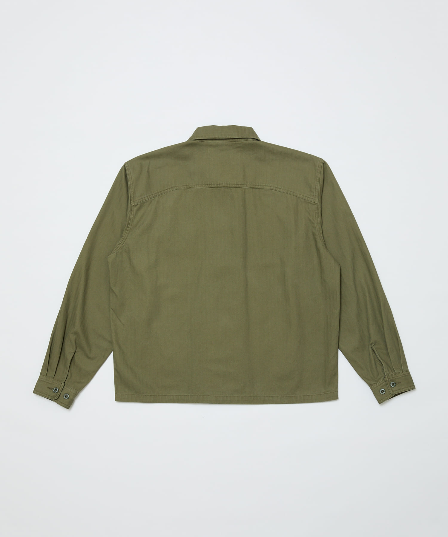斜めにカットされたフロント。オリジナルミリタリーボタン・バイオウオッシュ加工。