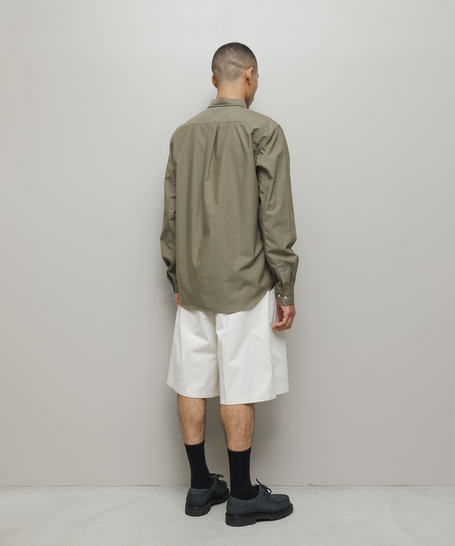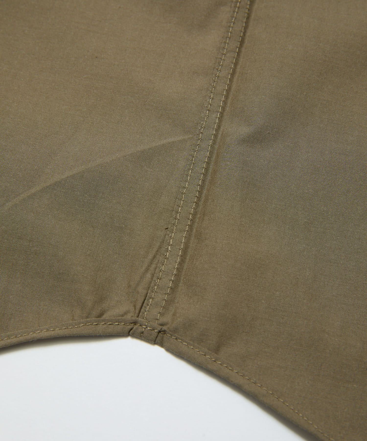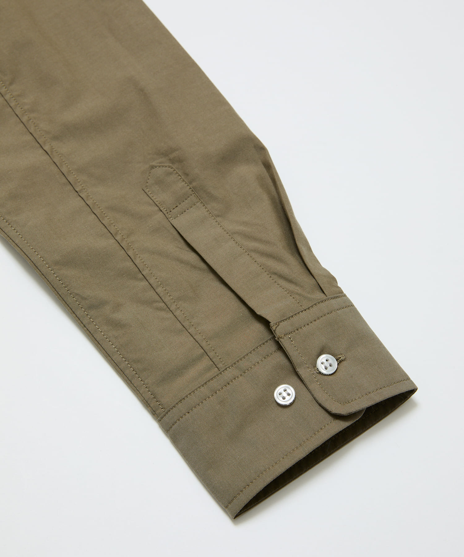 100双ストライプ、80/2ブラック、60/1コンパクト糸オリーブ、生地を採用。
