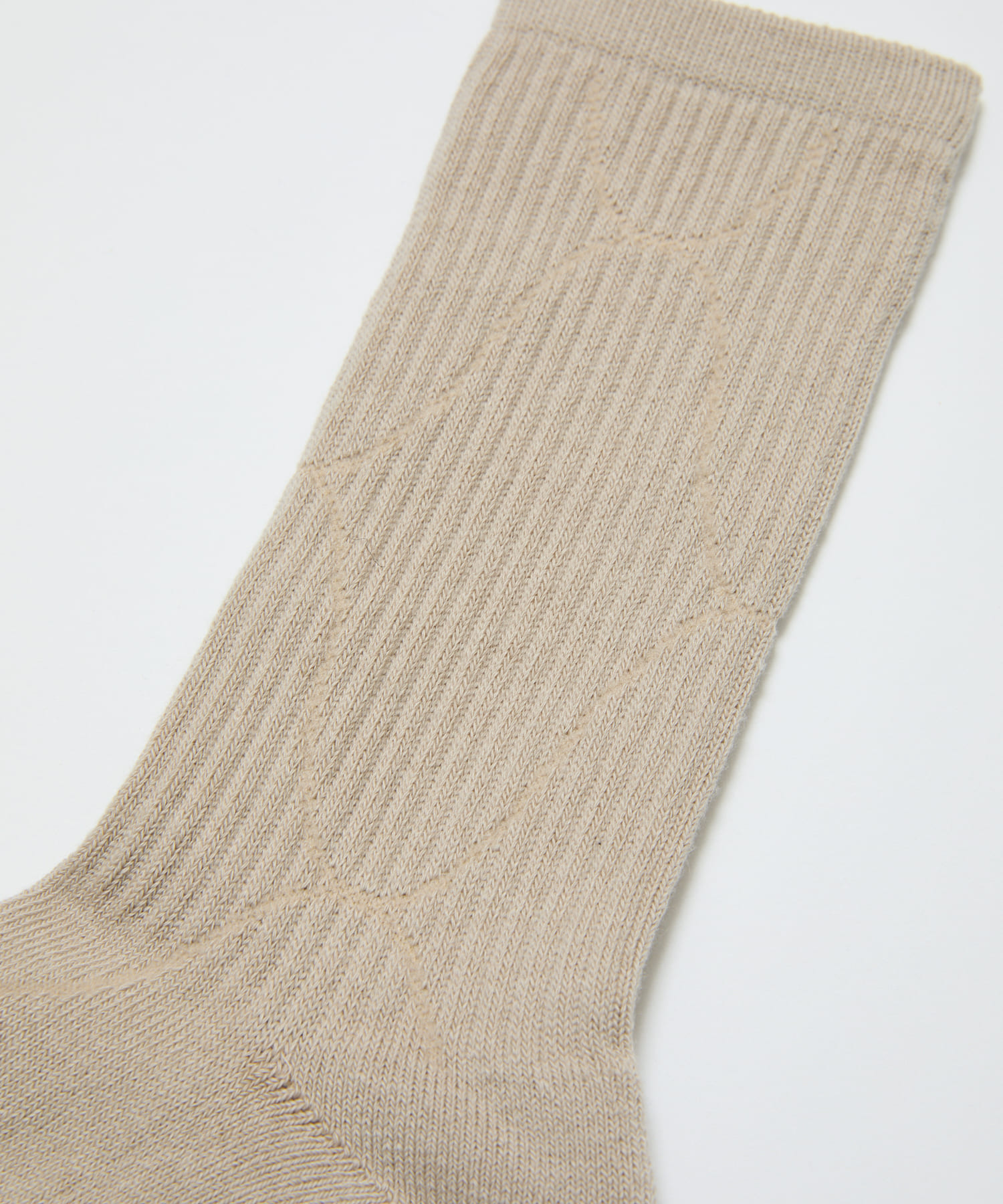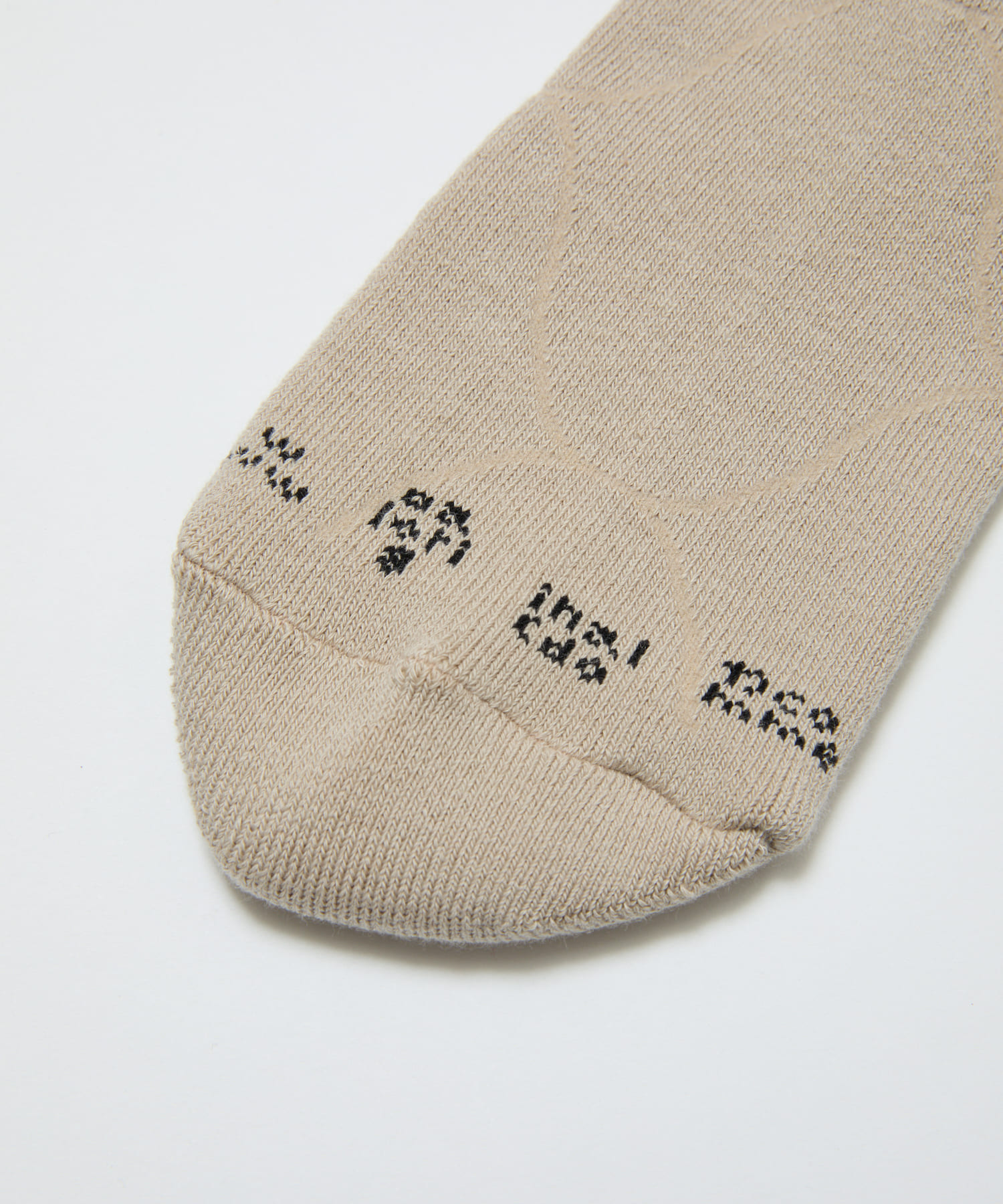 コットンのオリジナル柄を同色のジャカード織りで表現したソックス。底面は吸汗を考慮したパイル編み。