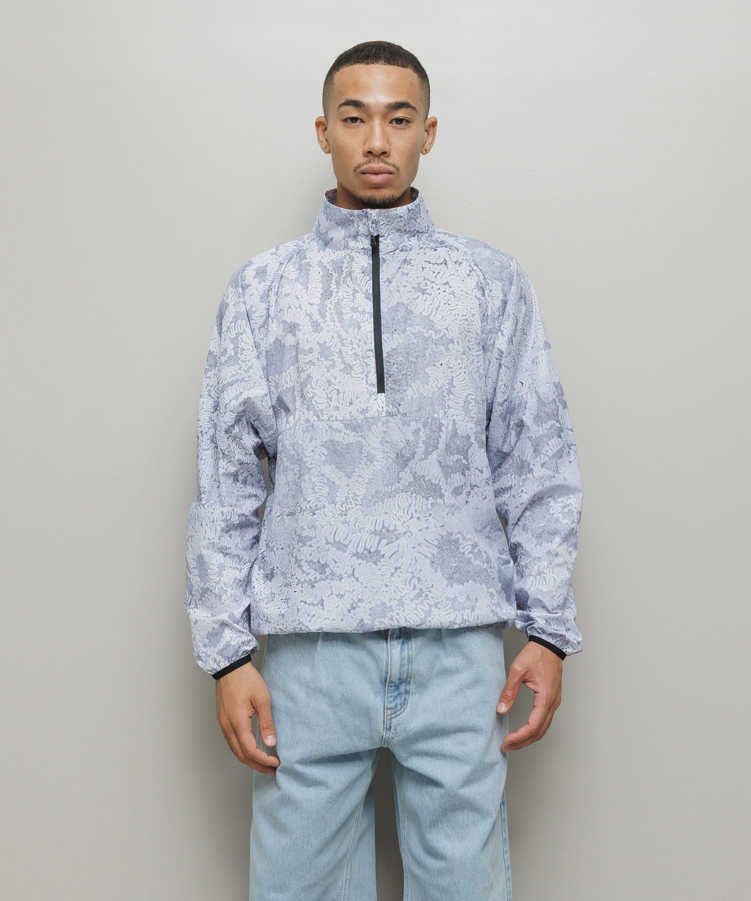 ナイロン素材ウインドブレーカーシャツ。