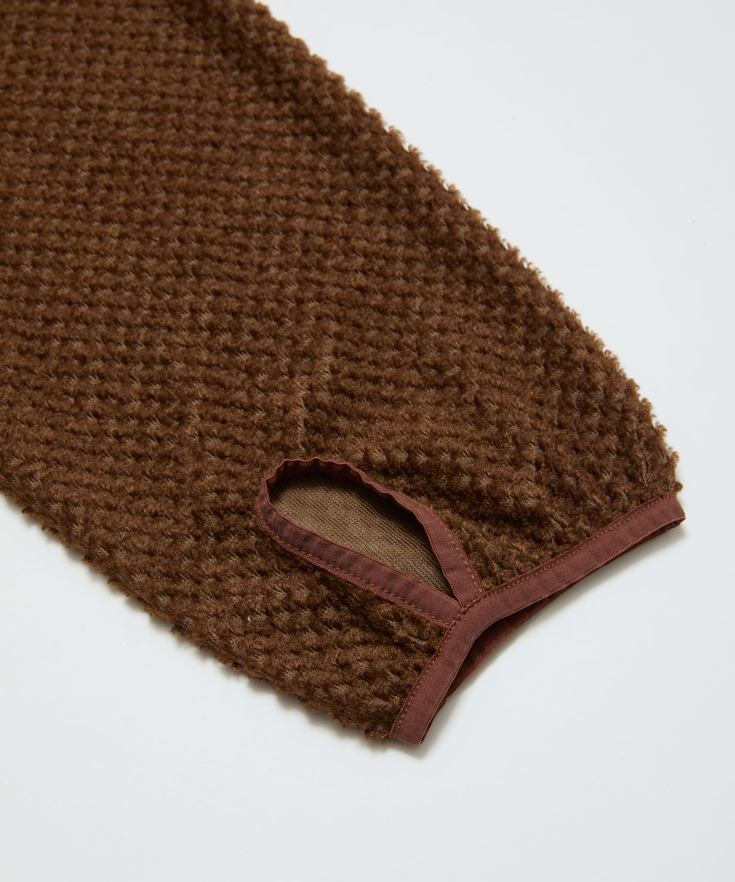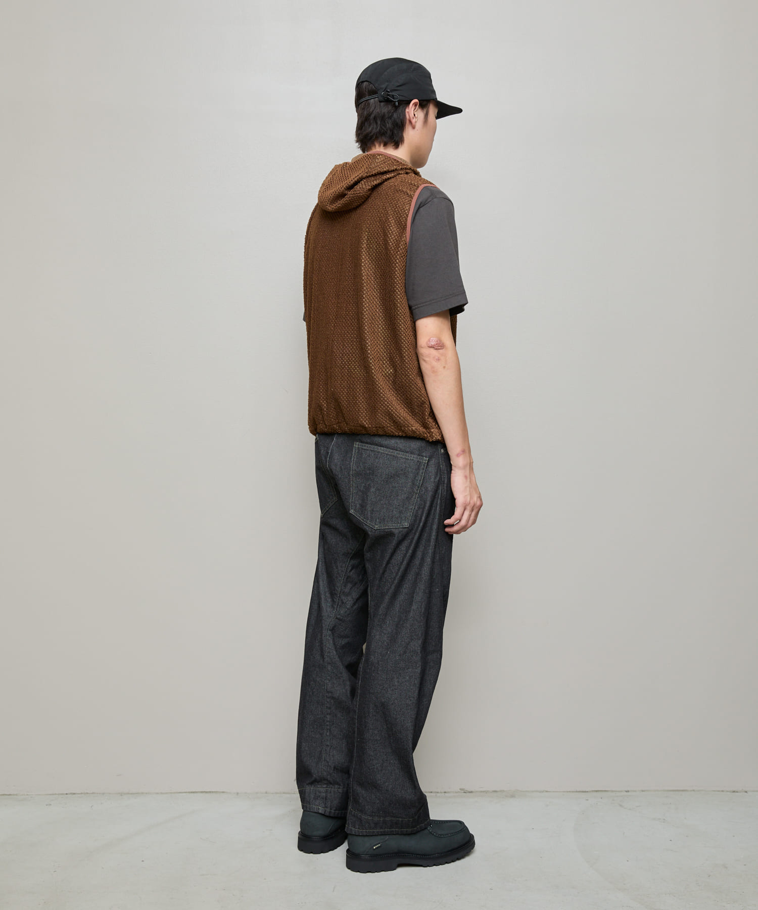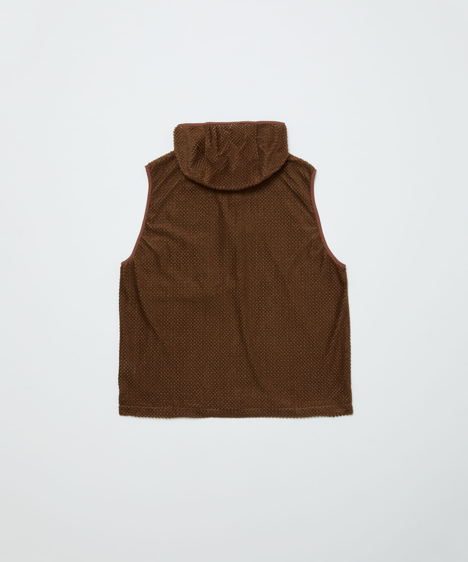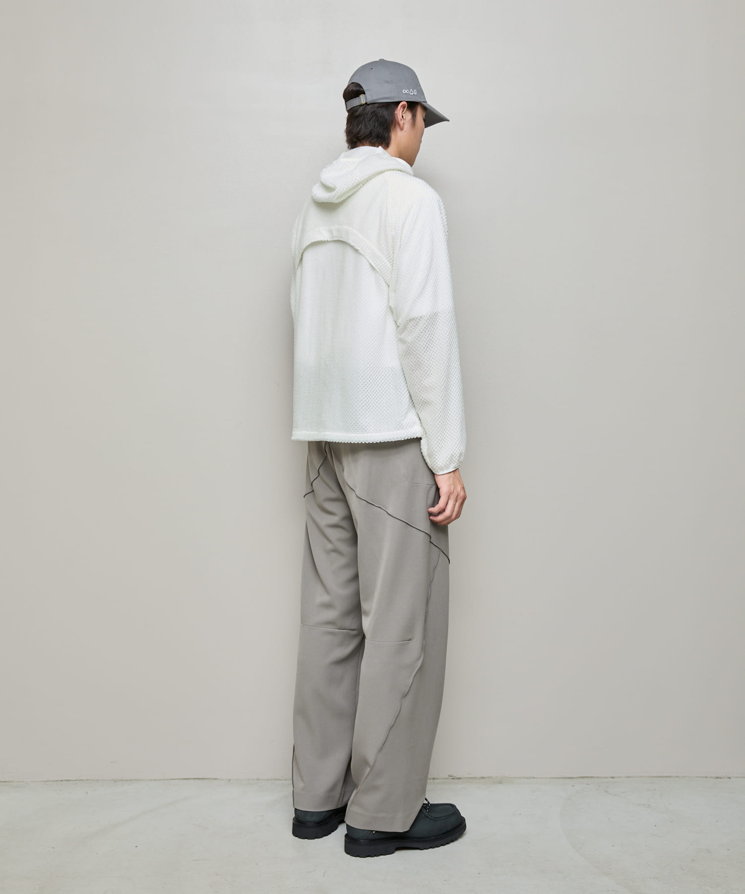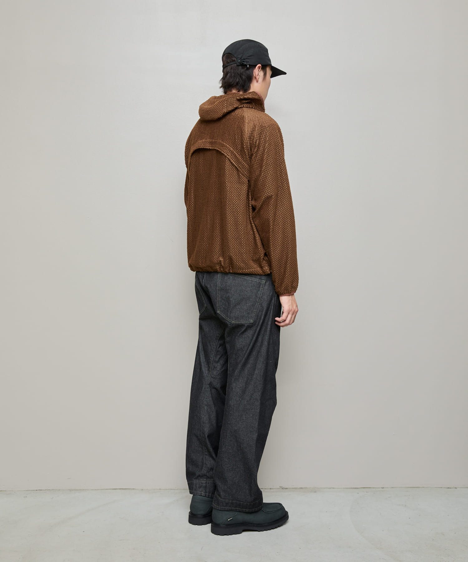 超軽量、保温、高い通気性、速乾機能素材TEIJINのOCTA®︎を使用。取り外し可能な袖を外すとベストになるハーフジッププルオーバーフーディー。
