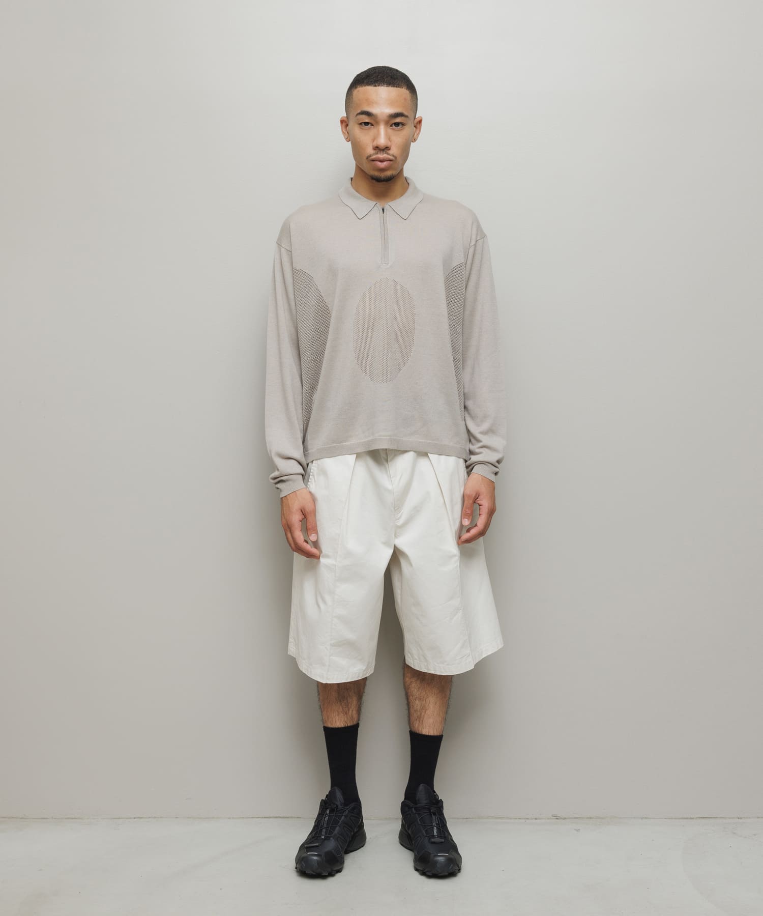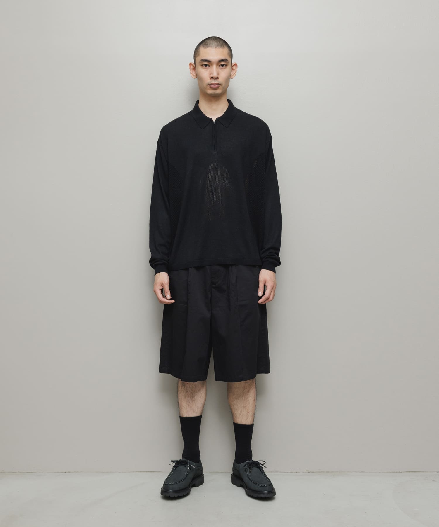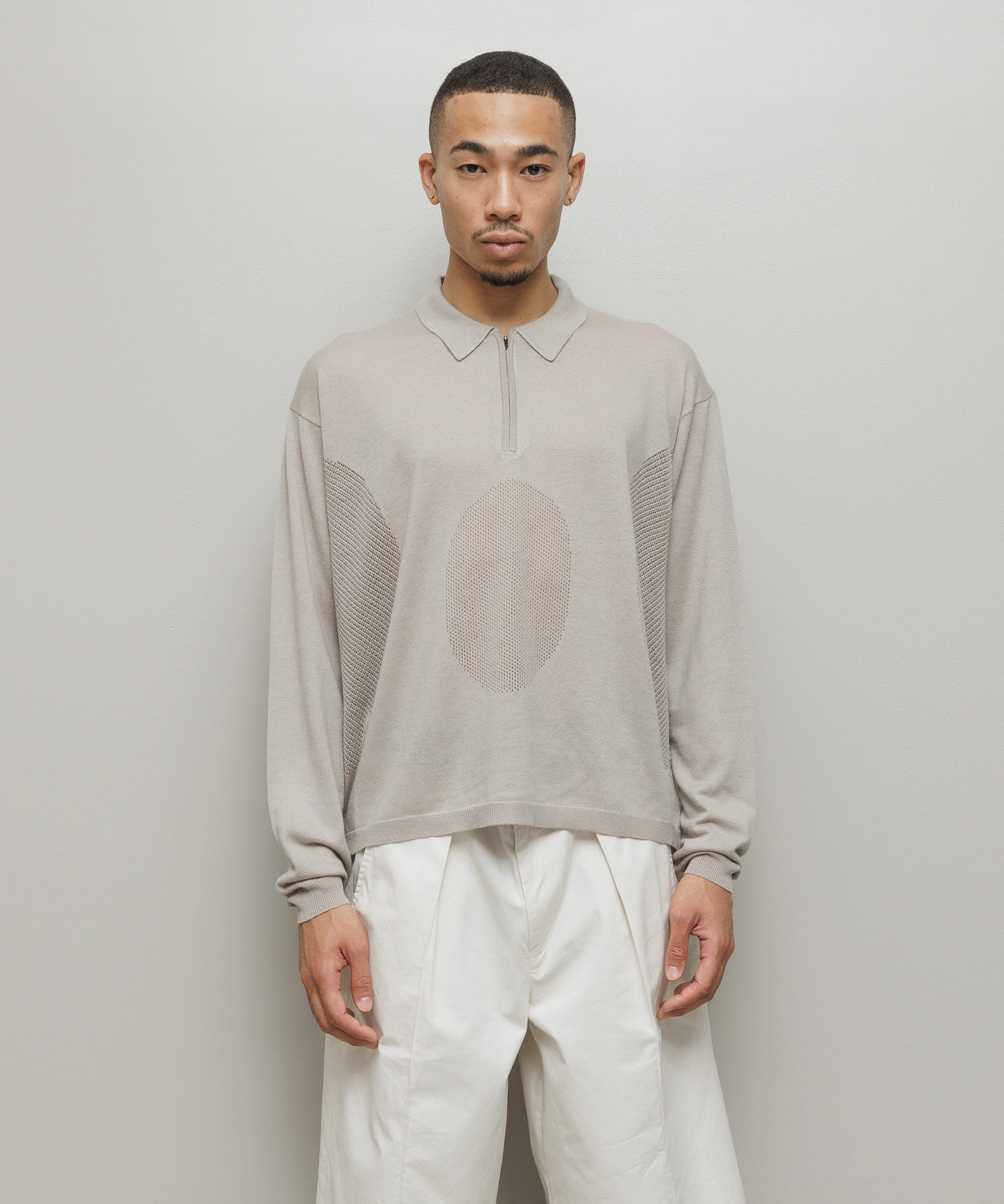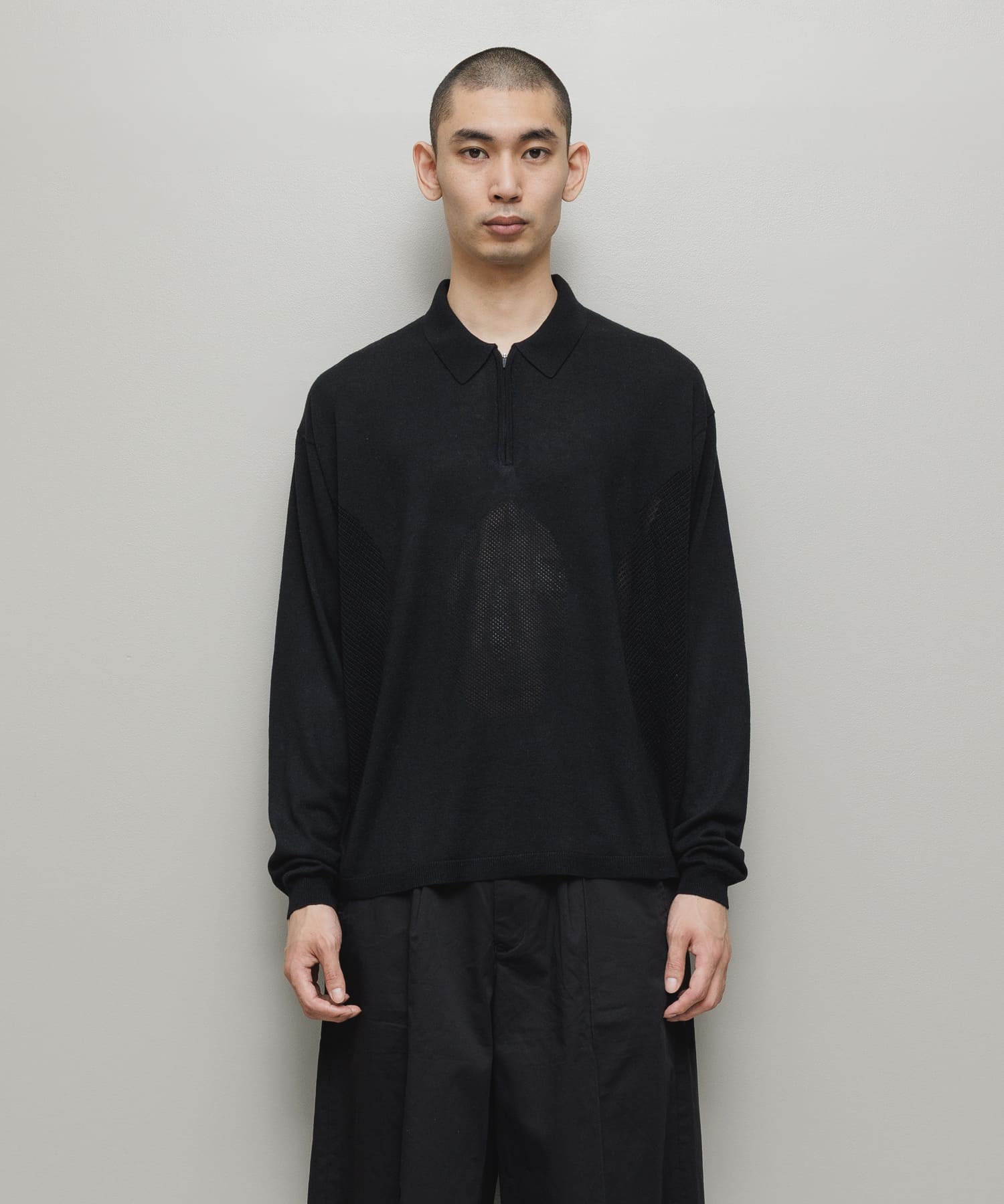 VENTILATION MESH KNIT ZIP POLO LS