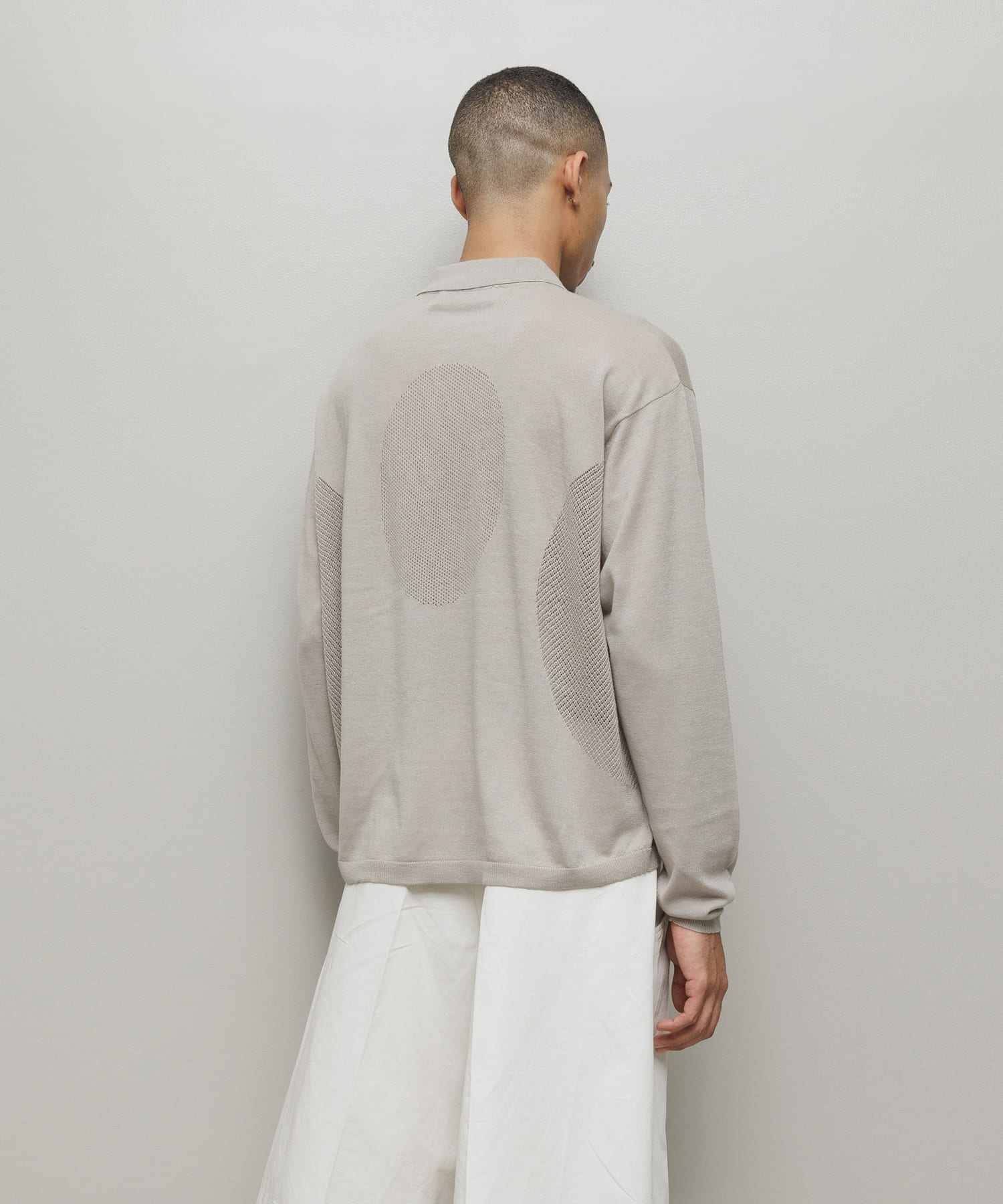 ハイゲージのメッシュジップアップニットポロ。ロングスリーブ。